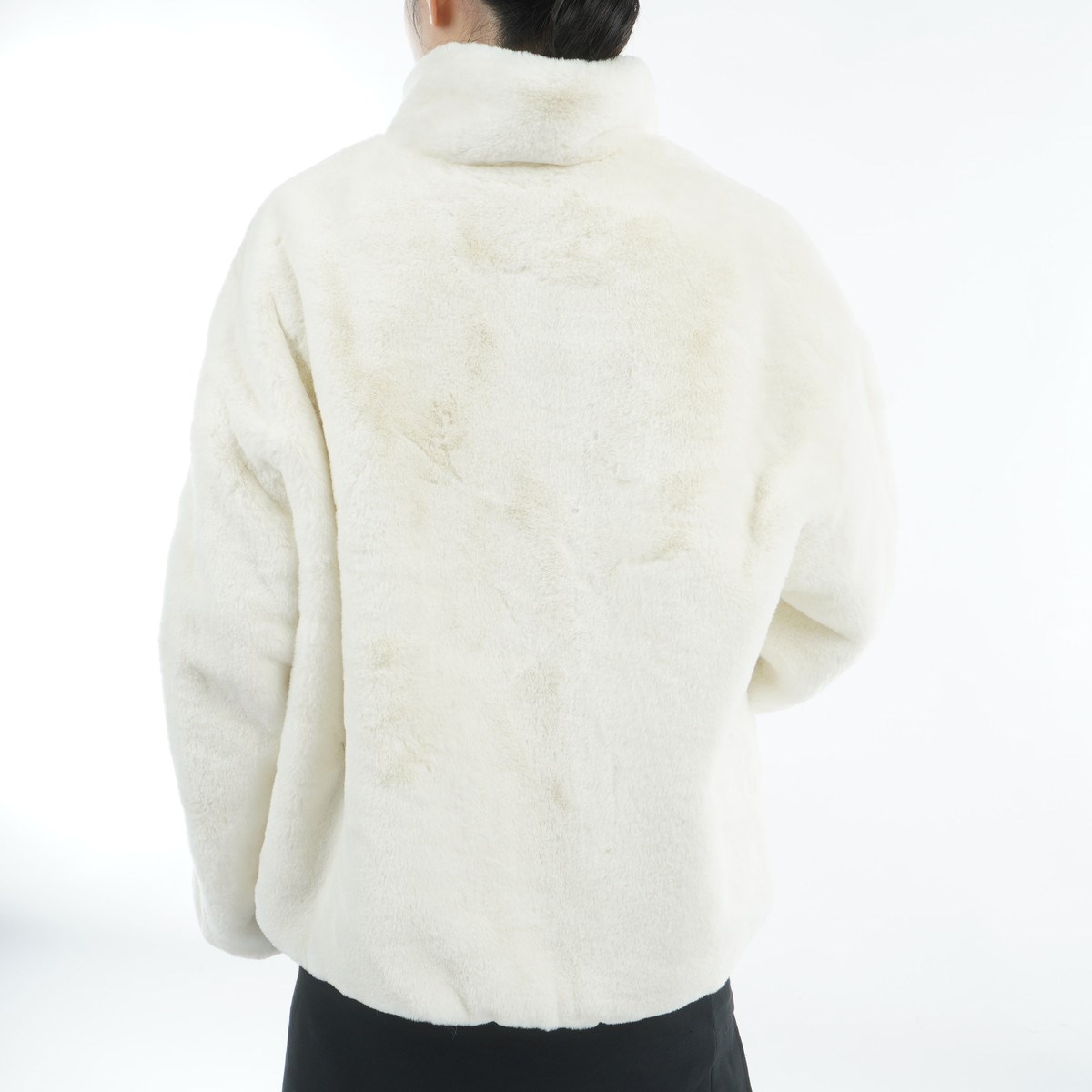 ポリエステル糸を使用したラビットファー調の素材は発色の良さと繊細なタッチが特徴です。