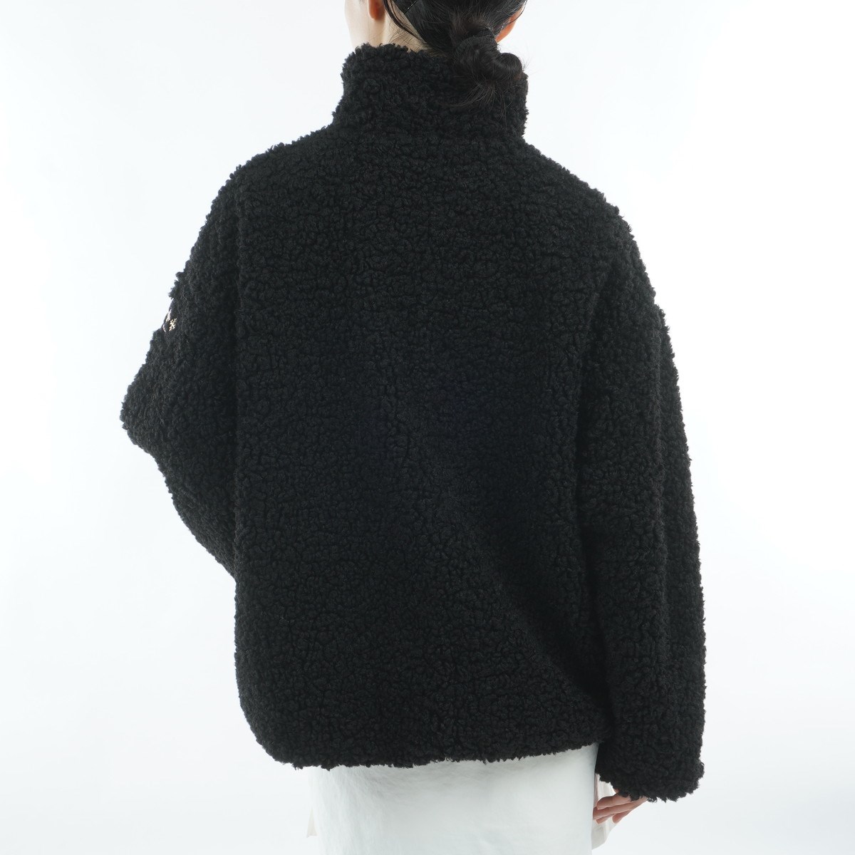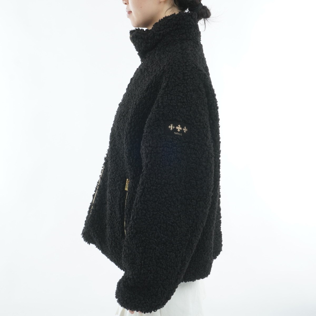 ウールのような質感のポリエステル糸を使用したシープ調ボアのブルゾン。