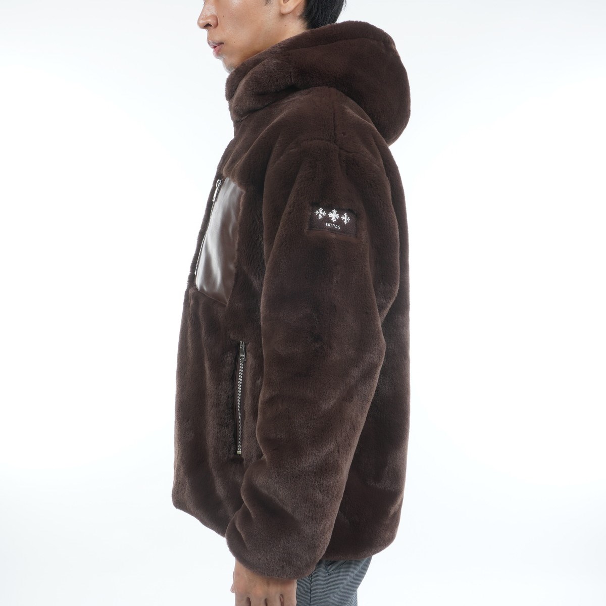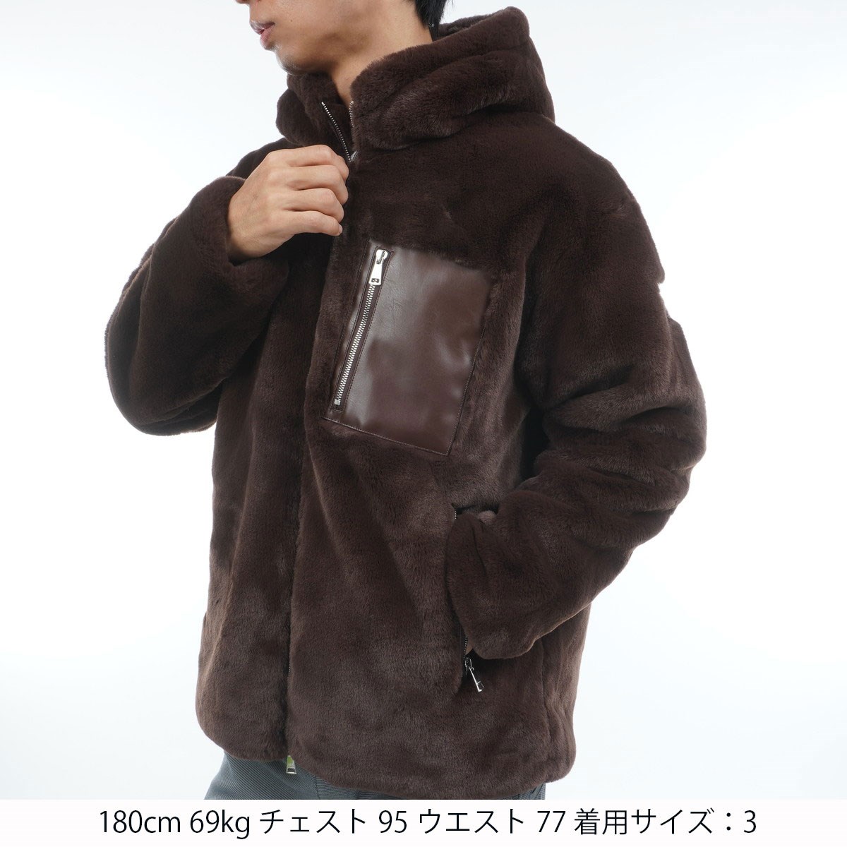 胸と腰にECOレザー仕様のポケットを配したボアジャケット。
