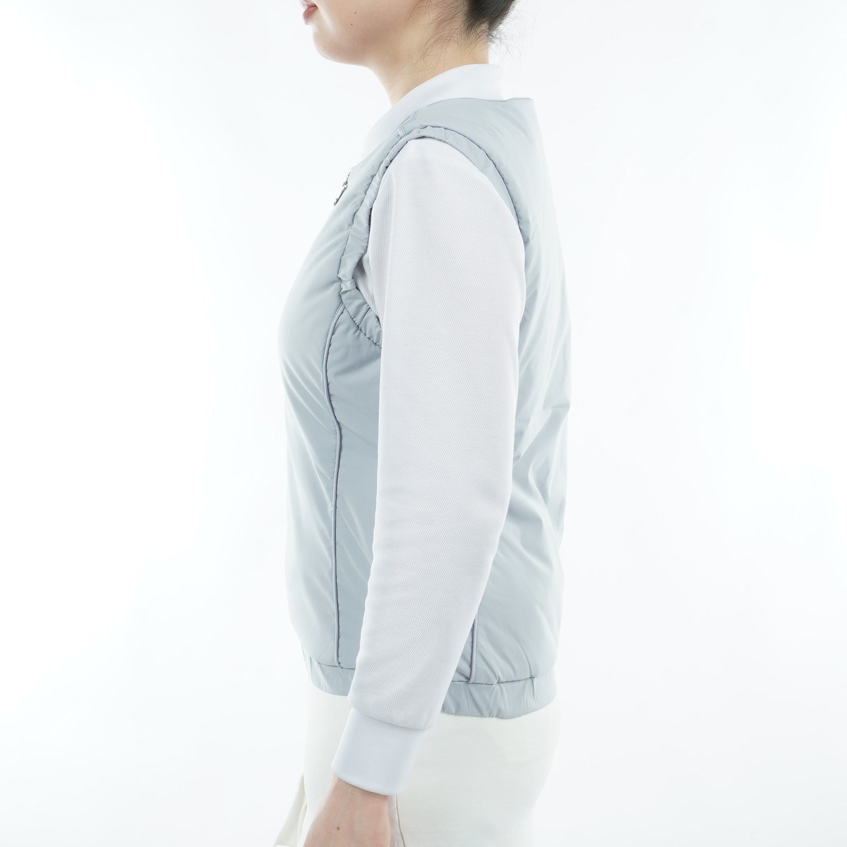 アームホールと裾はゴムシャーリングで外気の侵入を防ぎ、中綿の保温性を高めます。