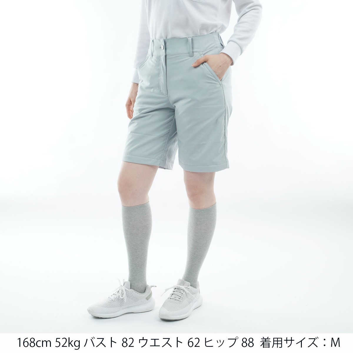 M:ウエスト(A)70、ウエスト(B)89、ヒップ98、股上28.5、股下23、わたり幅32.5