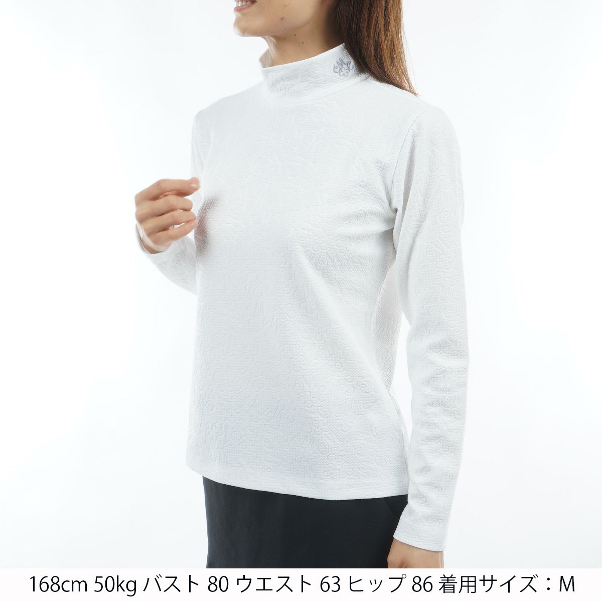 マリクレール marie claire ロゴエンボス モックネック長袖シャツ M ホワイト レディス