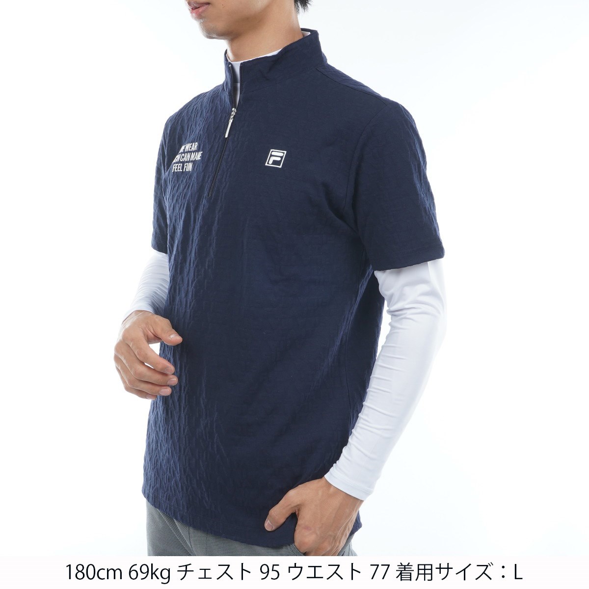 フィラ FILA 3Dジャカード 半袖シャツ+長袖ハイネックインナーシャツセット LL ネイビー