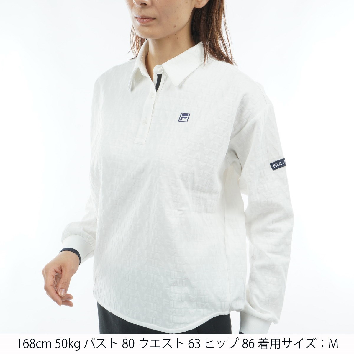 フィラ FILA 3Dジャカード 長袖ポロシャツ LL ホワイト レディス