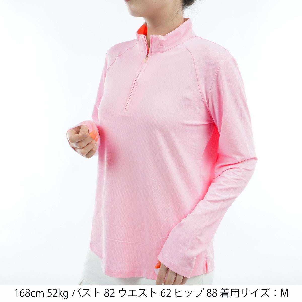 サン ソレイル SanSoleil UPF50+ ソルテック ラックス 長袖モックネックシャツ XS ピンク レディス