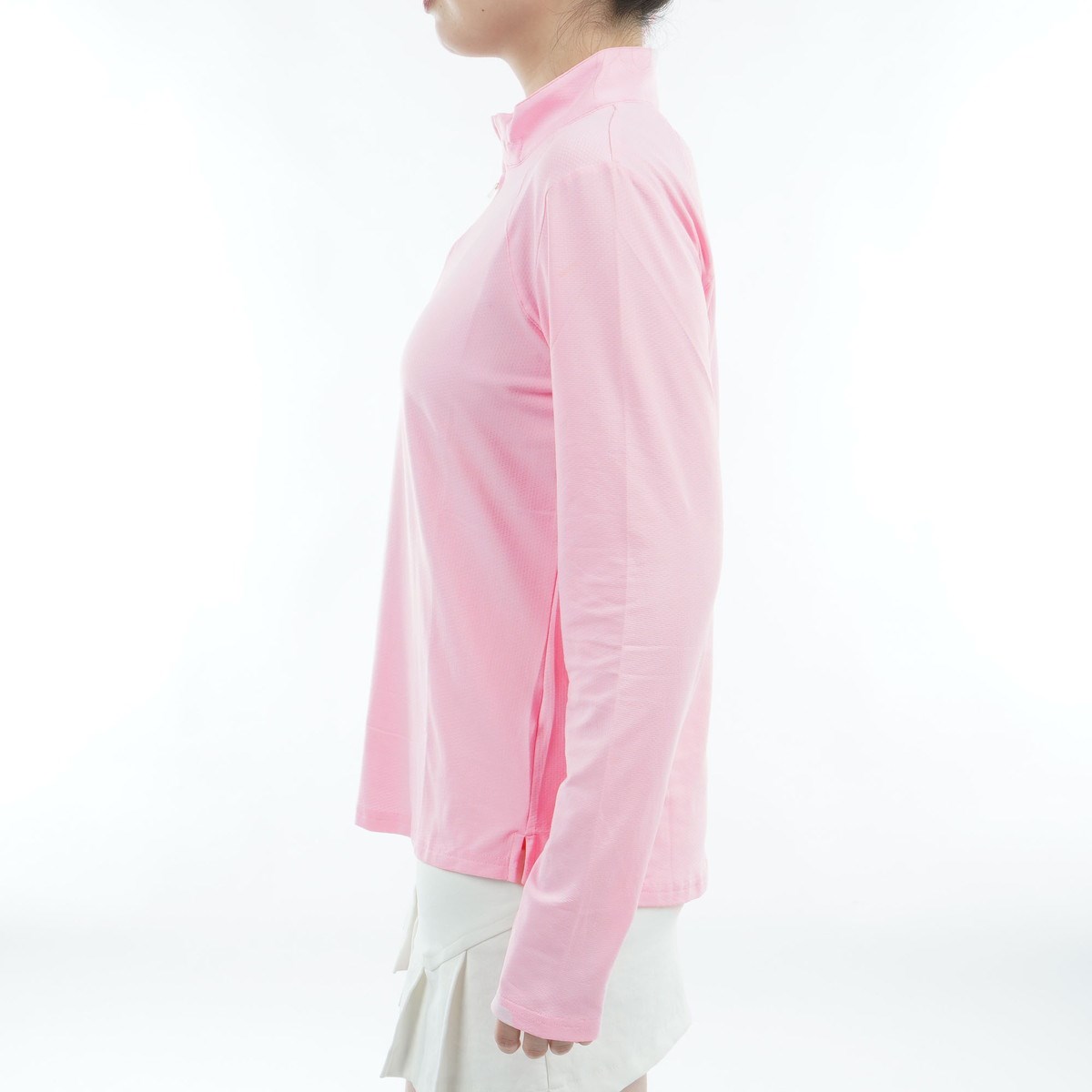 ・ジップモックネック!首元をしっかりガードするハイネックデザイン。紫外線を防ぎ、年齢が出やすいデリケートな首元のエイジングケアにも最適です。