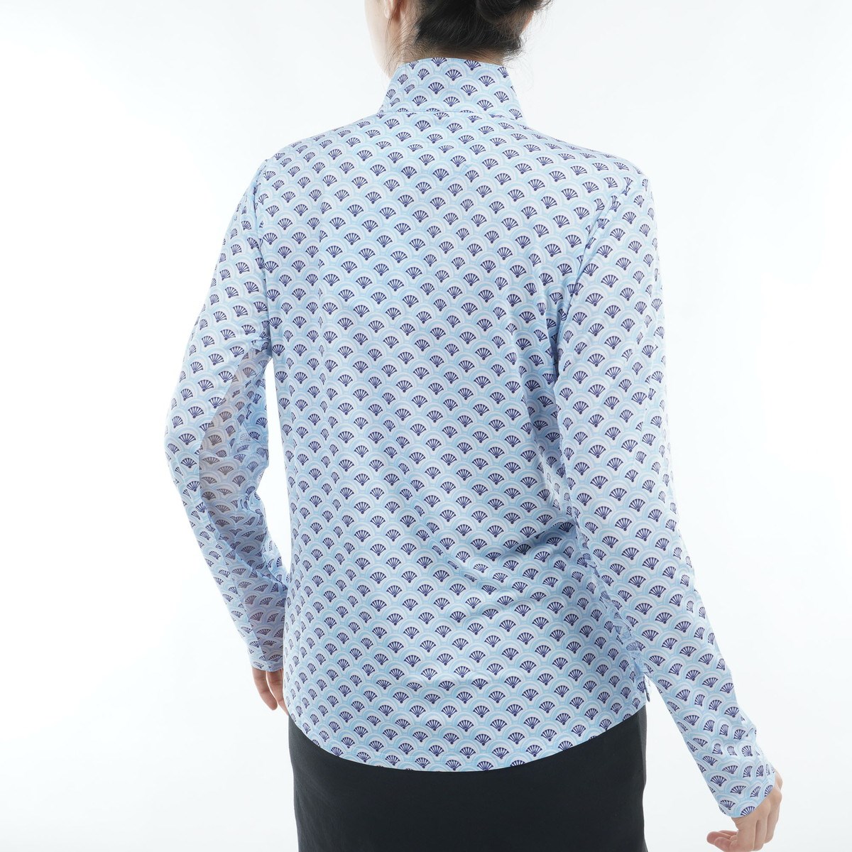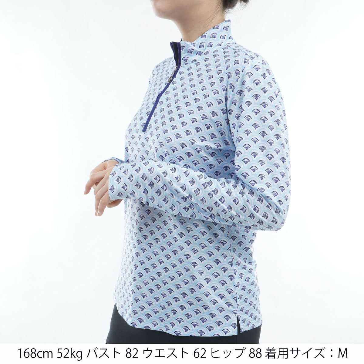 サン ソレイル SanSoleil UPF50+ ソルクール プリント 長袖モックネックシャツ L シェルティーブルー レディス