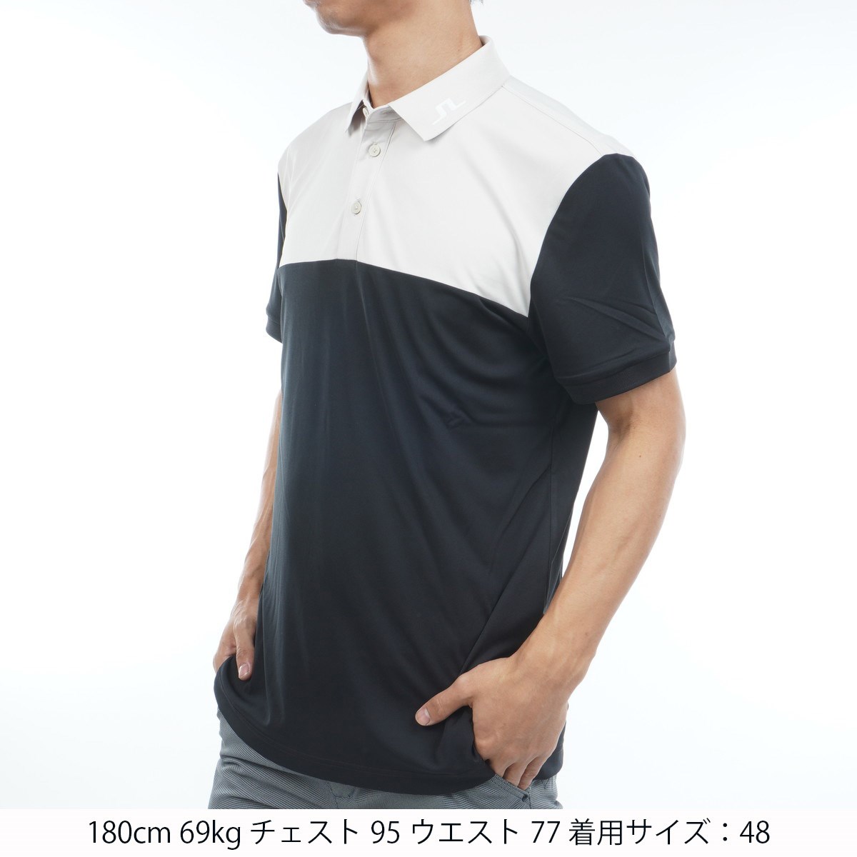 J.リンドバーグ J.LINDEBERG ストレッチ カラーブロックバックブリッジ半袖ポロシャツ 46 ブラック 019