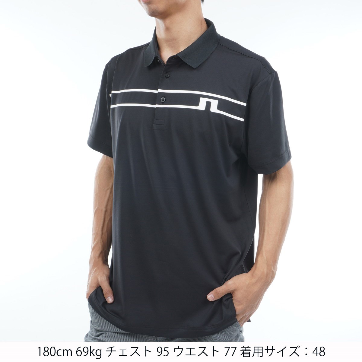 J.リンドバーグ J.LINDEBERG ストレッチ ストライプブリッジプリント半袖ポロシャツ 46 ブラック 019