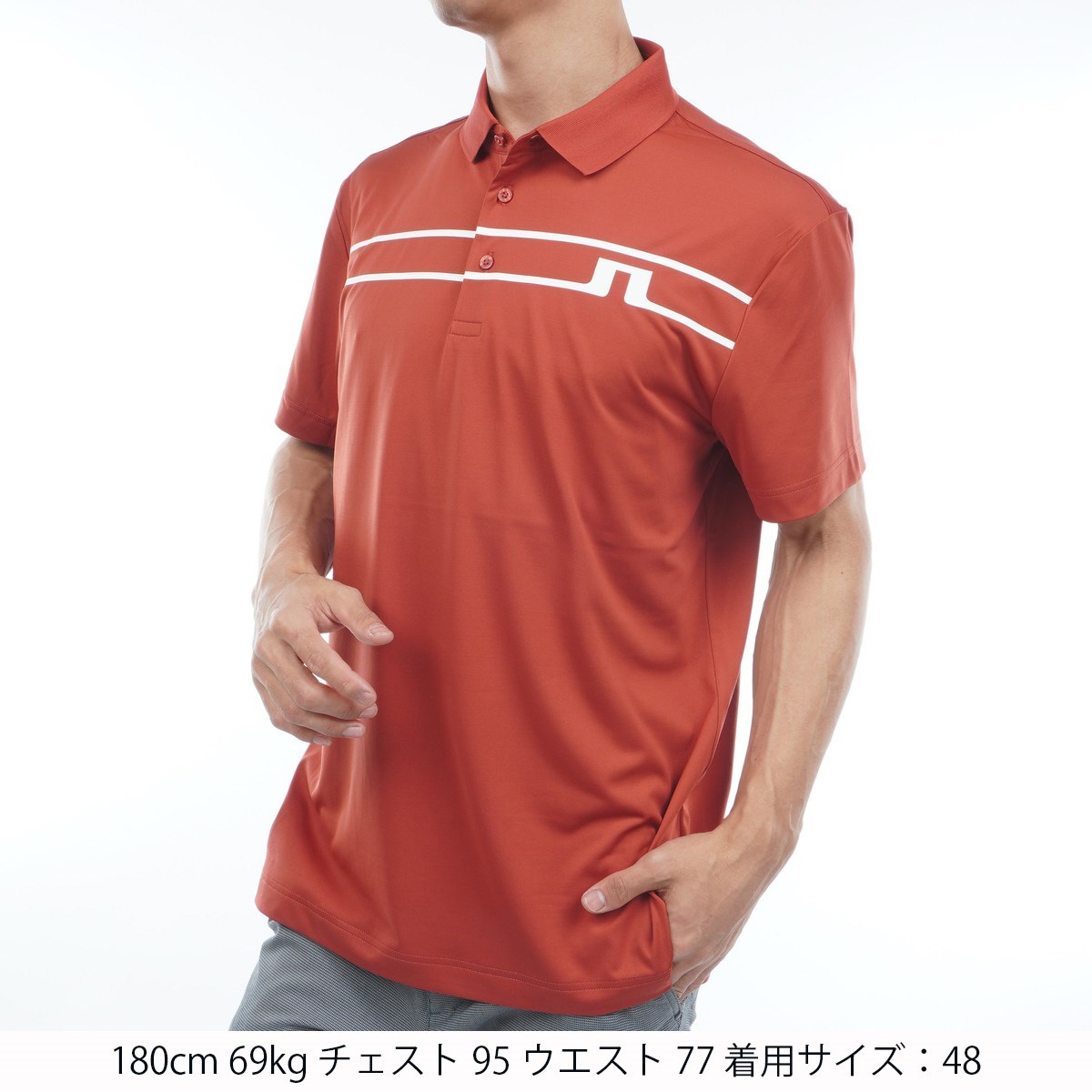 J.リンドバーグ J.LINDEBERG ストレッチ ストライプブリッジプリント半袖ポロシャツ 44 レッド 064