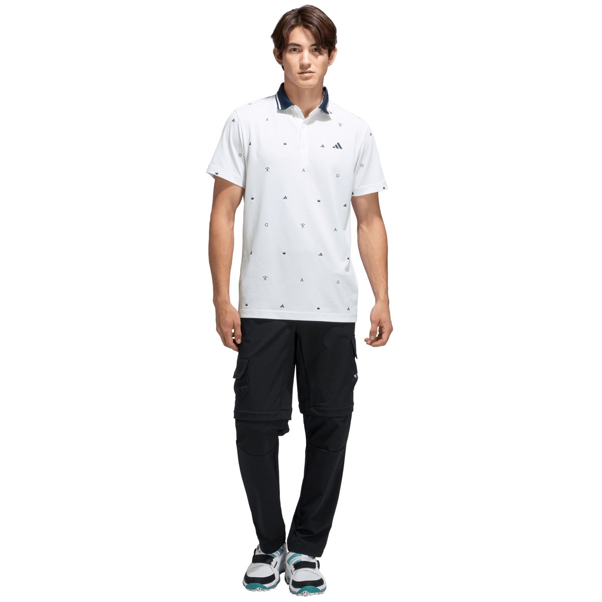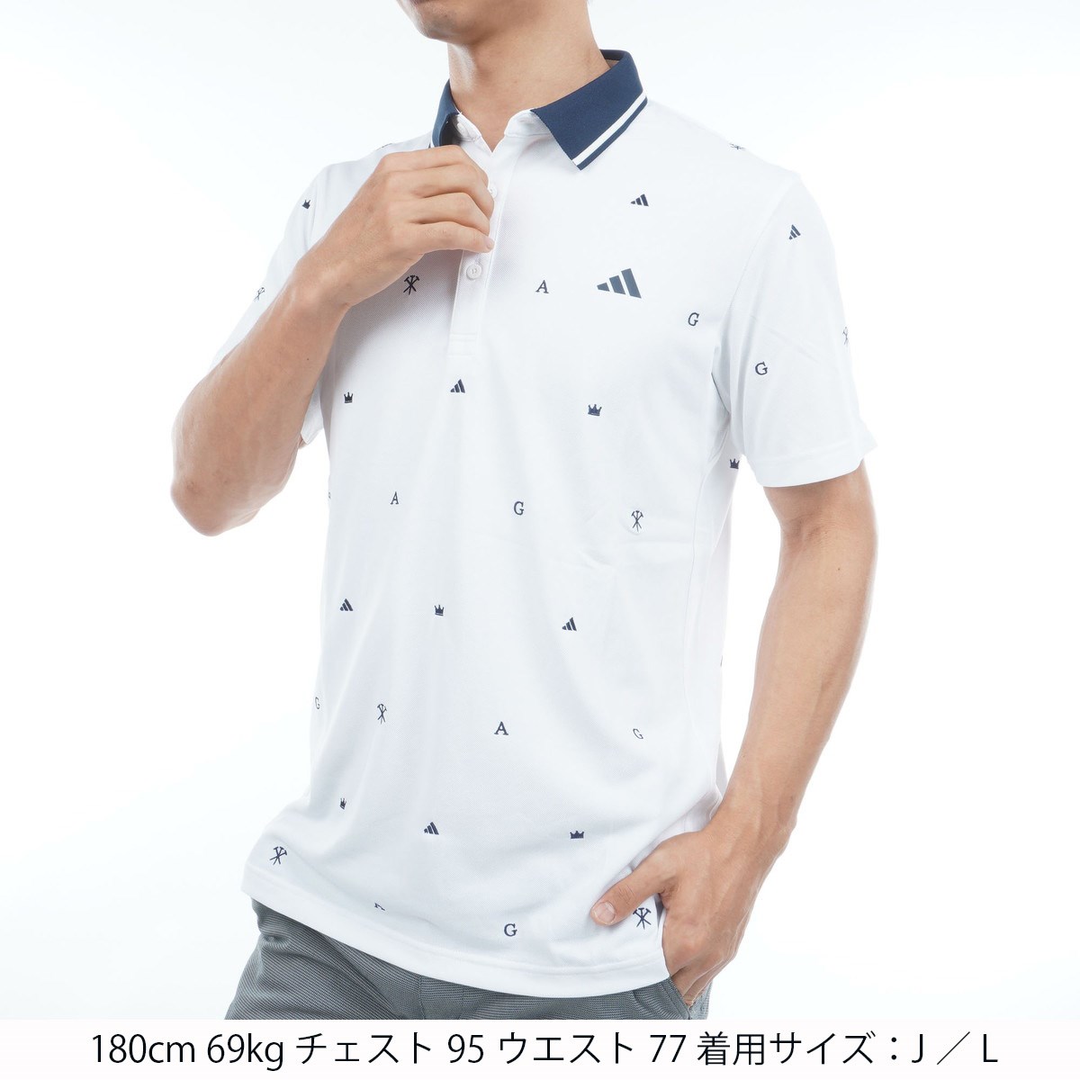 アディダス Adidas モノグラム半袖ポロシャツ J/XL ホワイト