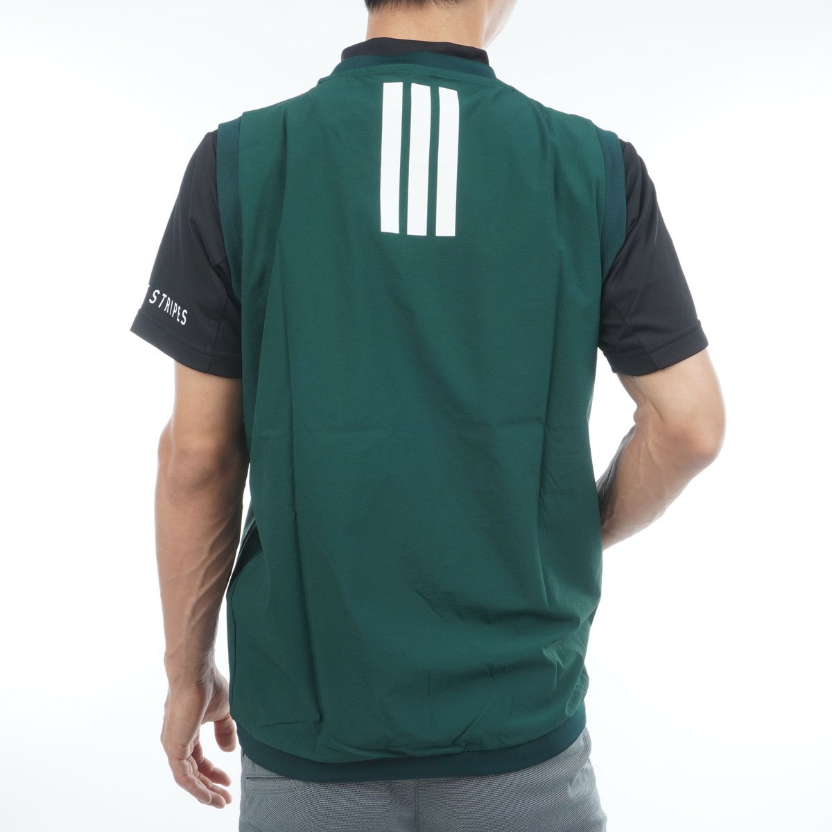 セットのベストは、ストレッチ性と撥水機能で、動きやすさと天候への対応力を発揮。