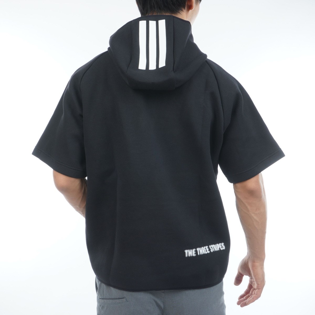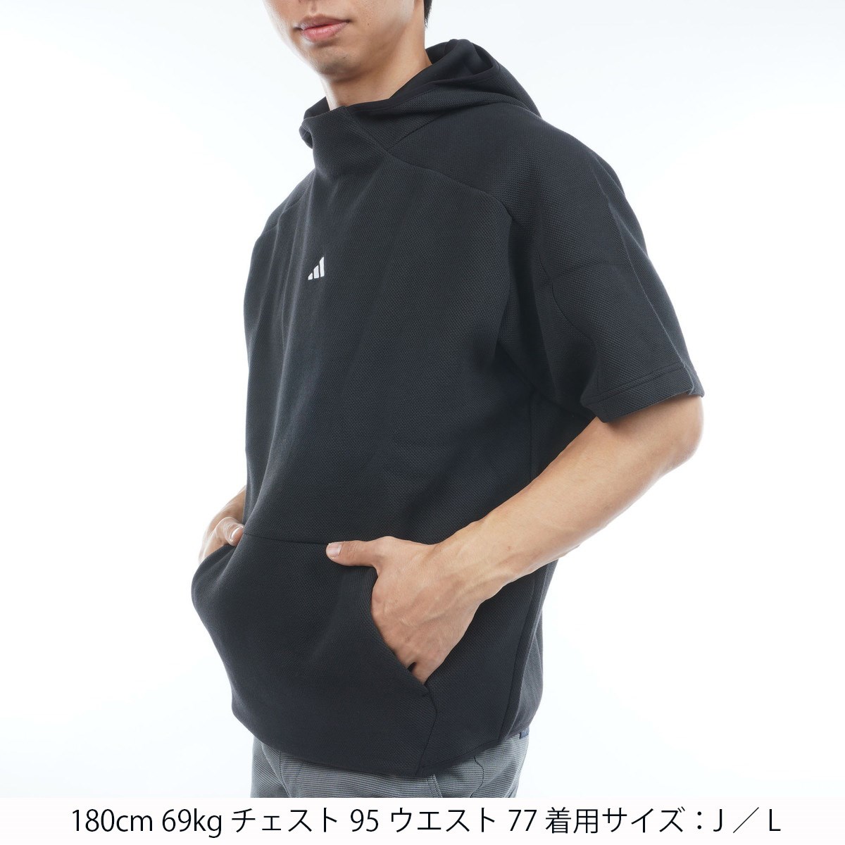 アディダス Adidas ストレッチ スウェット 半袖フーディー J/M ブラック