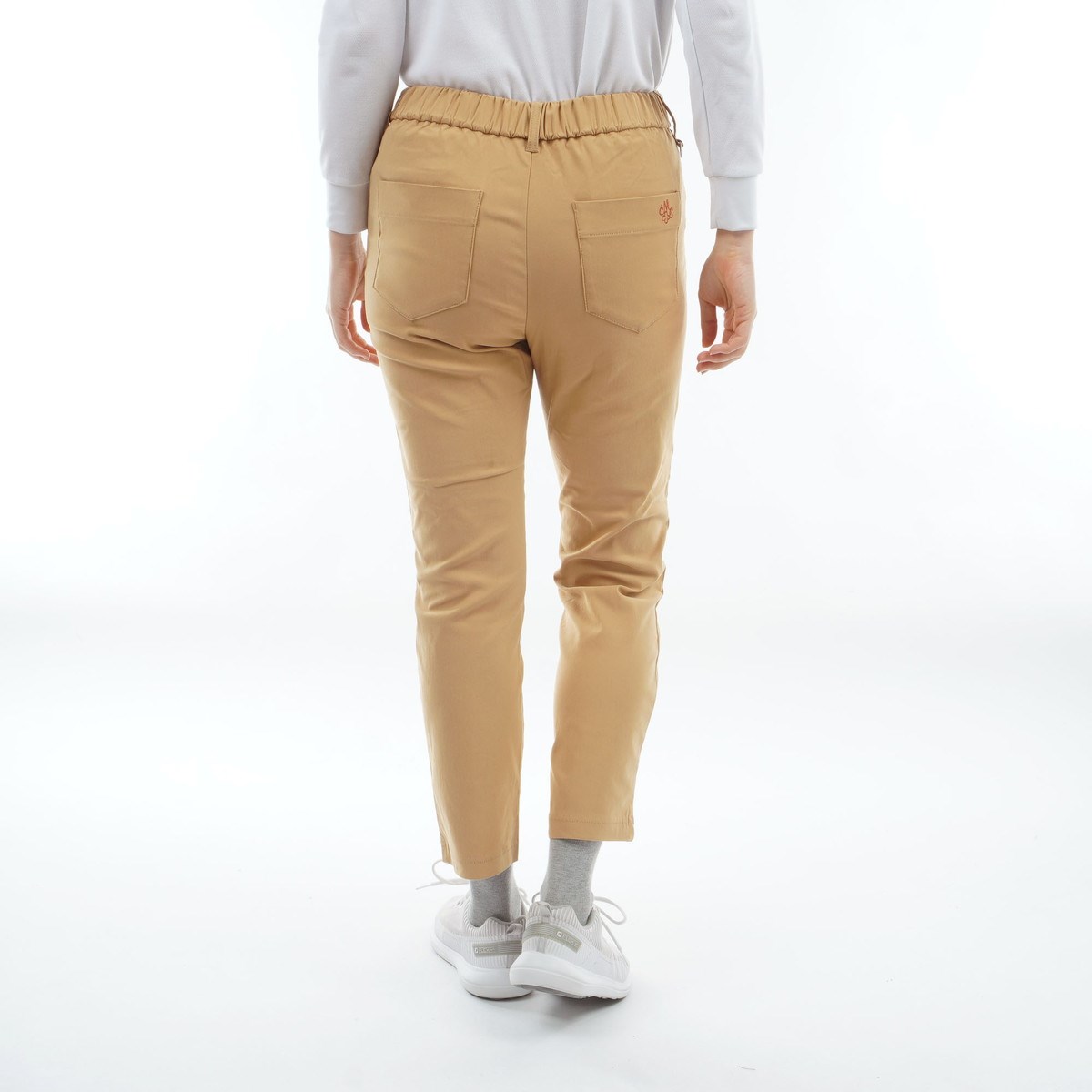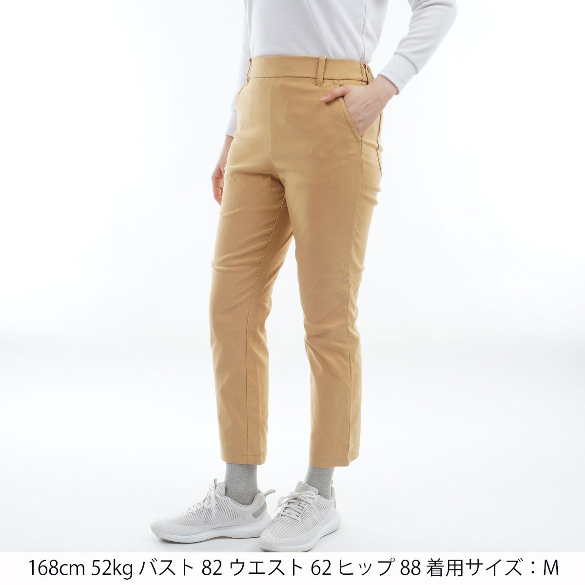 程よいフィット感のストレートシルエットでスタイルアップを叶えつつ、ウエスト後ろはギャザー入りゴム仕様+内側スピンドル紐付き、フィット感も調整可能でラクチンな履き心地です。