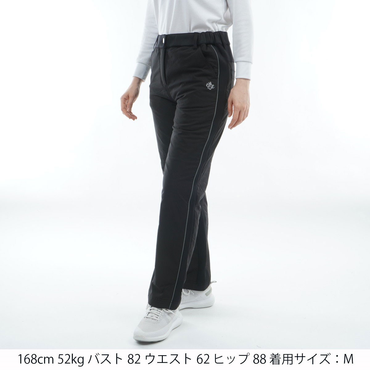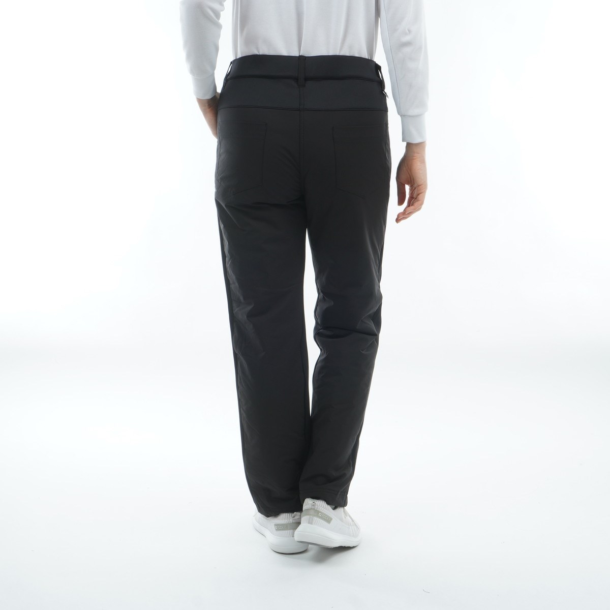 前後身頃には保温性のある中綿入り4WAYドビーストレッチ素材を、脇と股下にはストレッチ性抜群のダンボールニットを採用し、ウエスト脇ゴムシャーリング仕様で動きやすさと暖かさを両立、アクティブな動作もスムーズで、冬のゴルフやスポーツシーンにぴったりです。