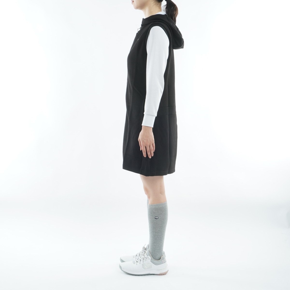 フルジップ開閉&フード付きで、ロングベストとしてもワンピースとしても着回し可能。