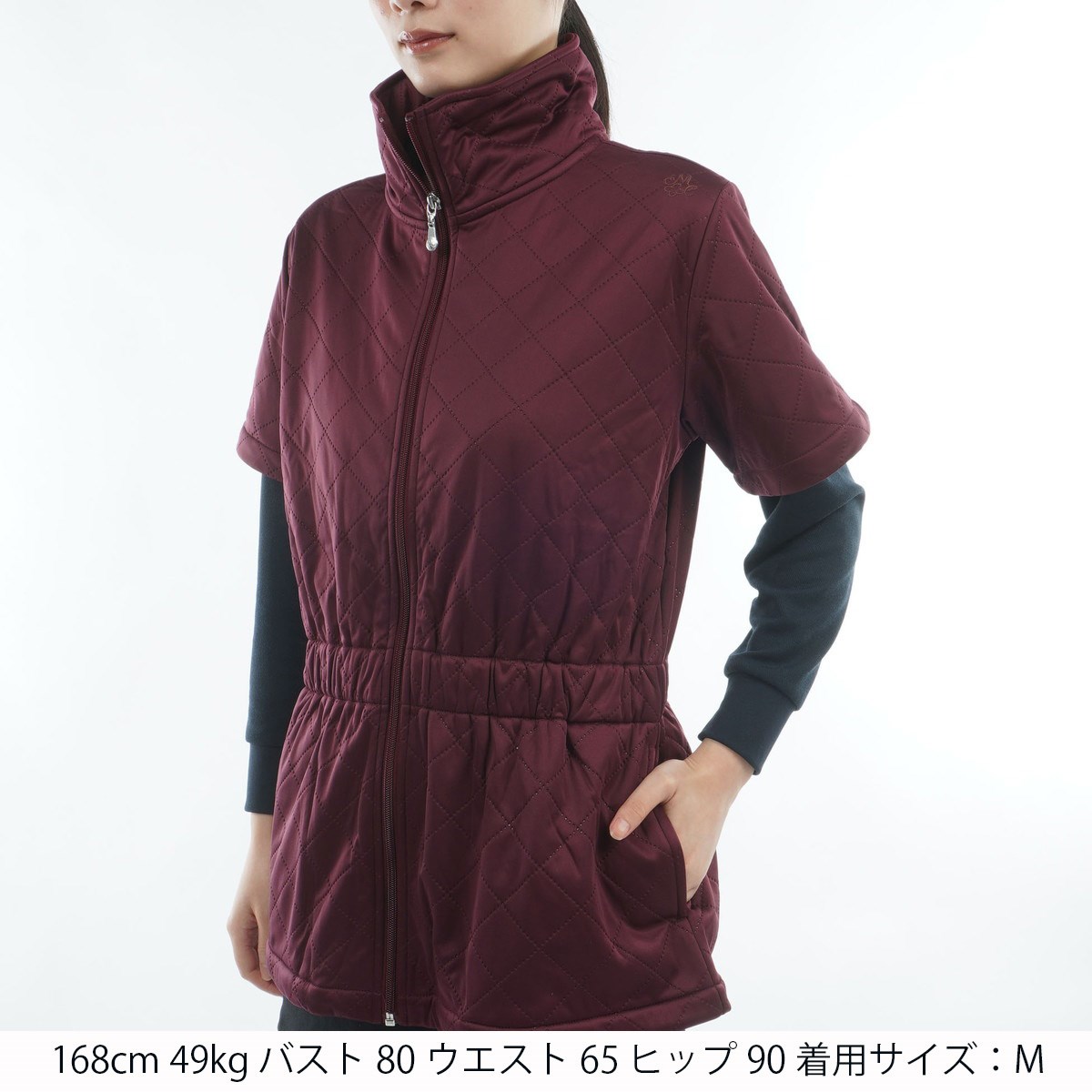 マリクレール marie claire ストレッチ 高周波キルト半袖ブルゾン LL ワインレッド レディス
