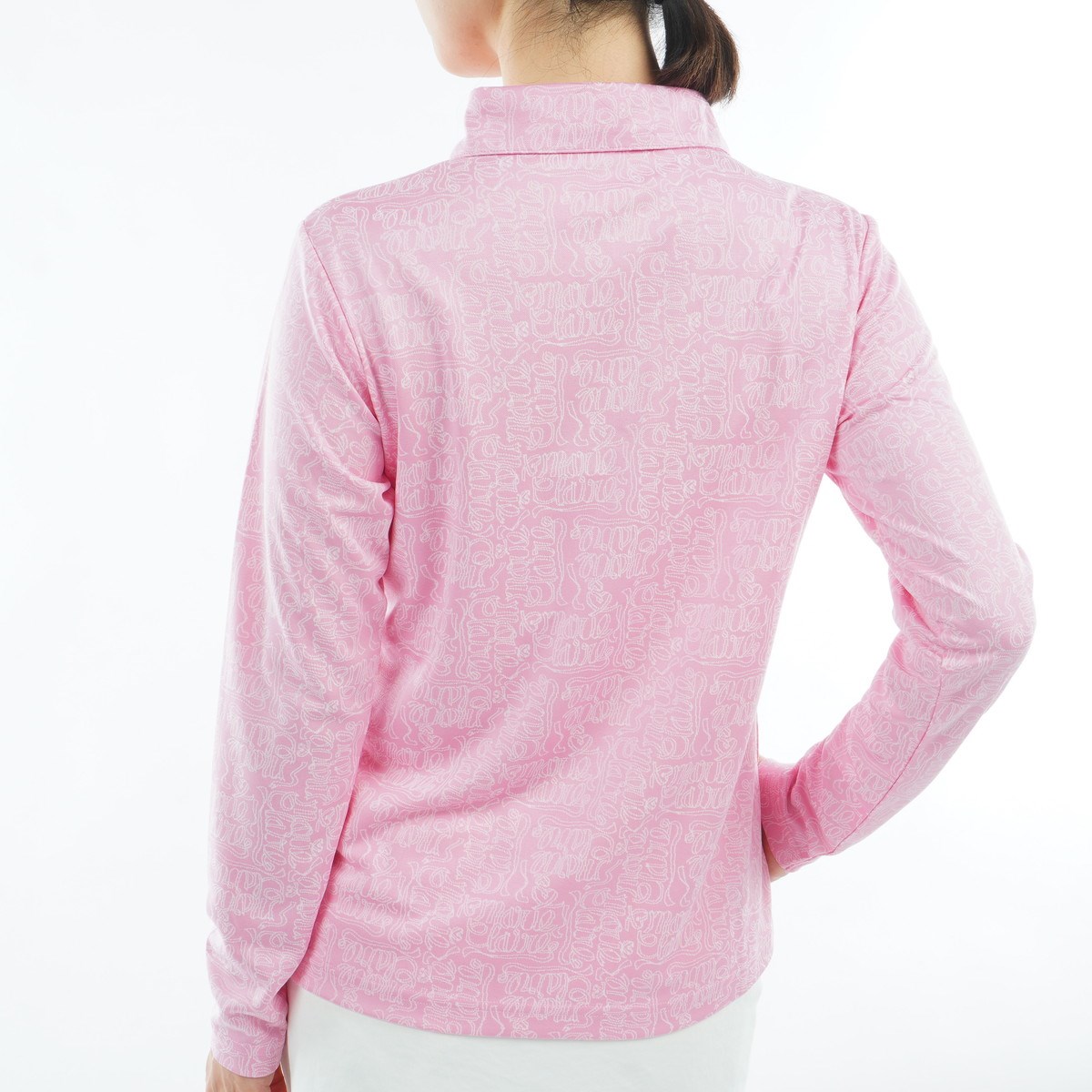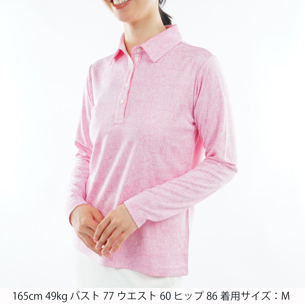 マリクレール marie claire ストレッチ ロゴジャカード 長袖ポロシャツ LL ライトピンク レディス