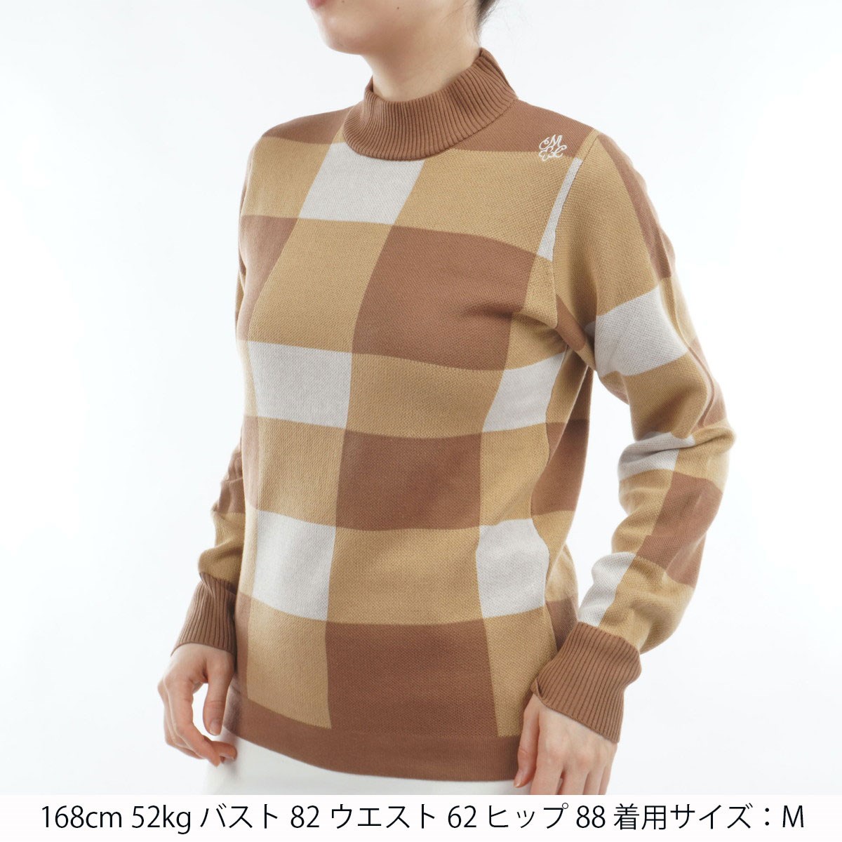 マリクレール marie claire チェック柄 モックネックセーター 3L ベージュ レディス