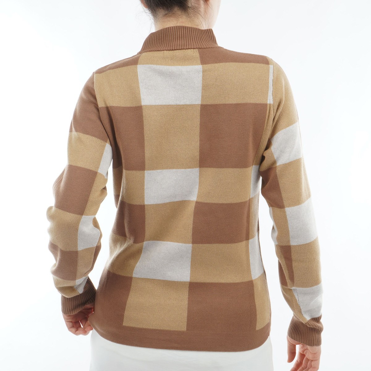 軽くてあったか冬の主役、チェック柄モックネックセーター。