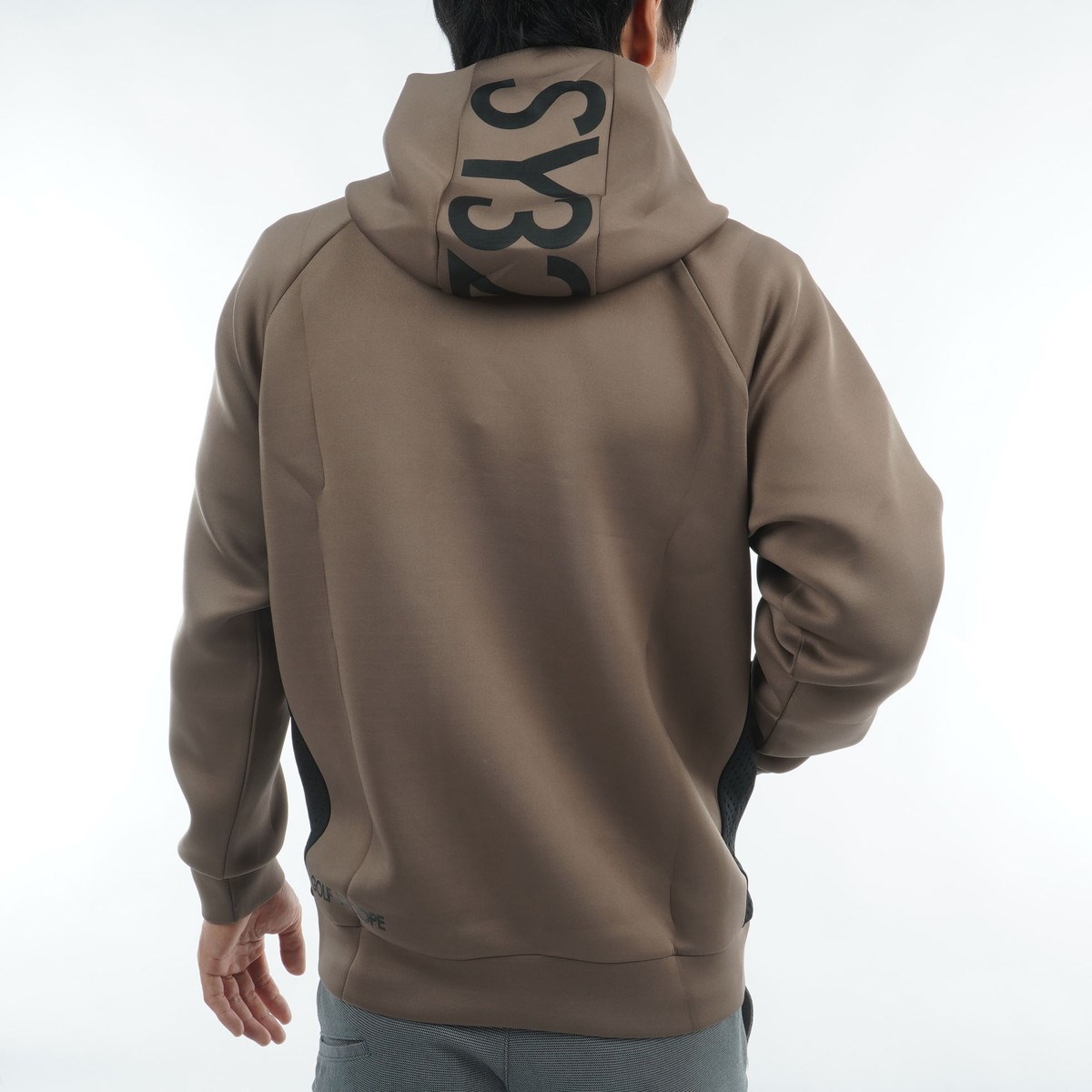 軽量性と通気性を兼ね備えたダンボールニット素材を使用したフーディー。