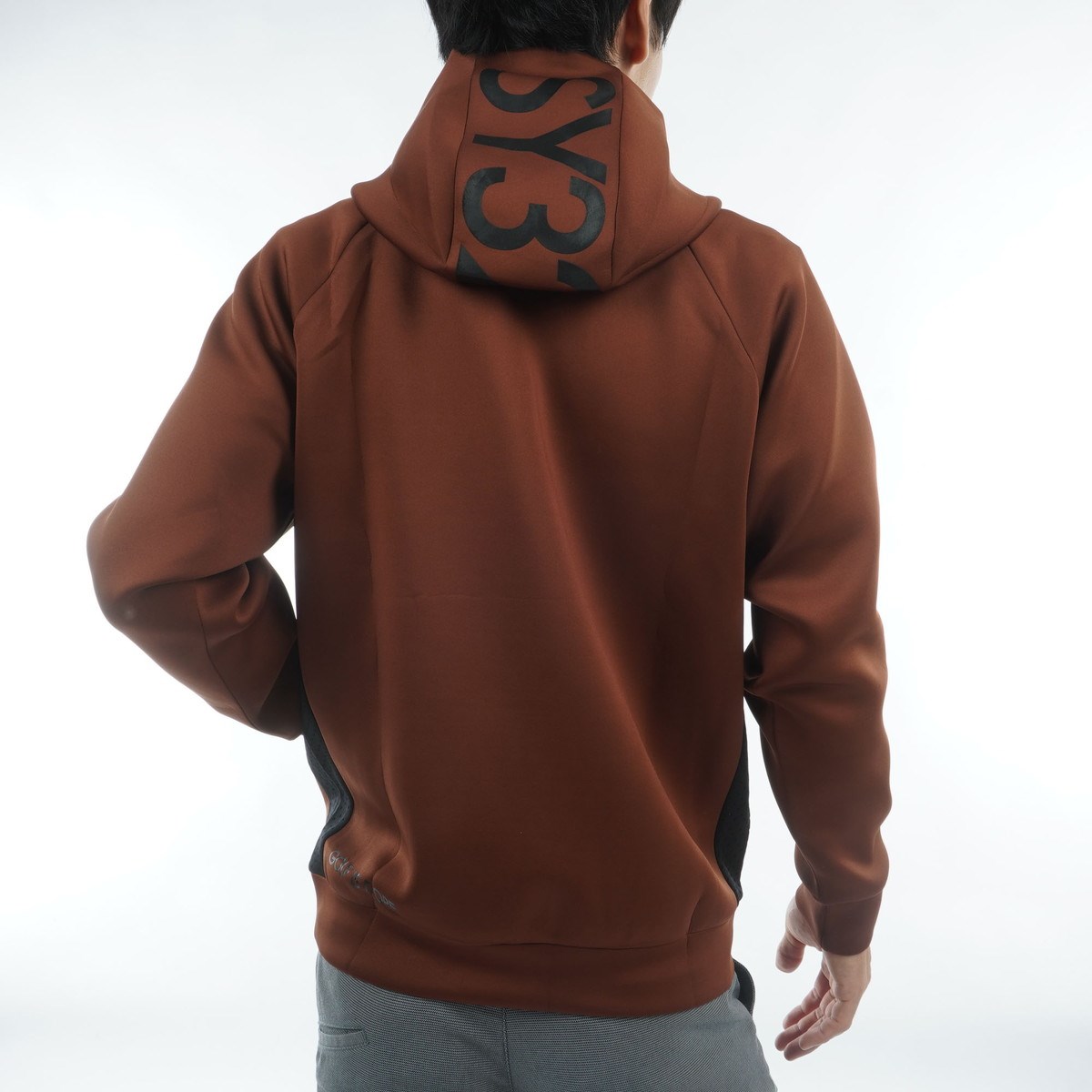 軽量性と通気性を兼ね備えたダンボールニット素材を使用したフーディー。