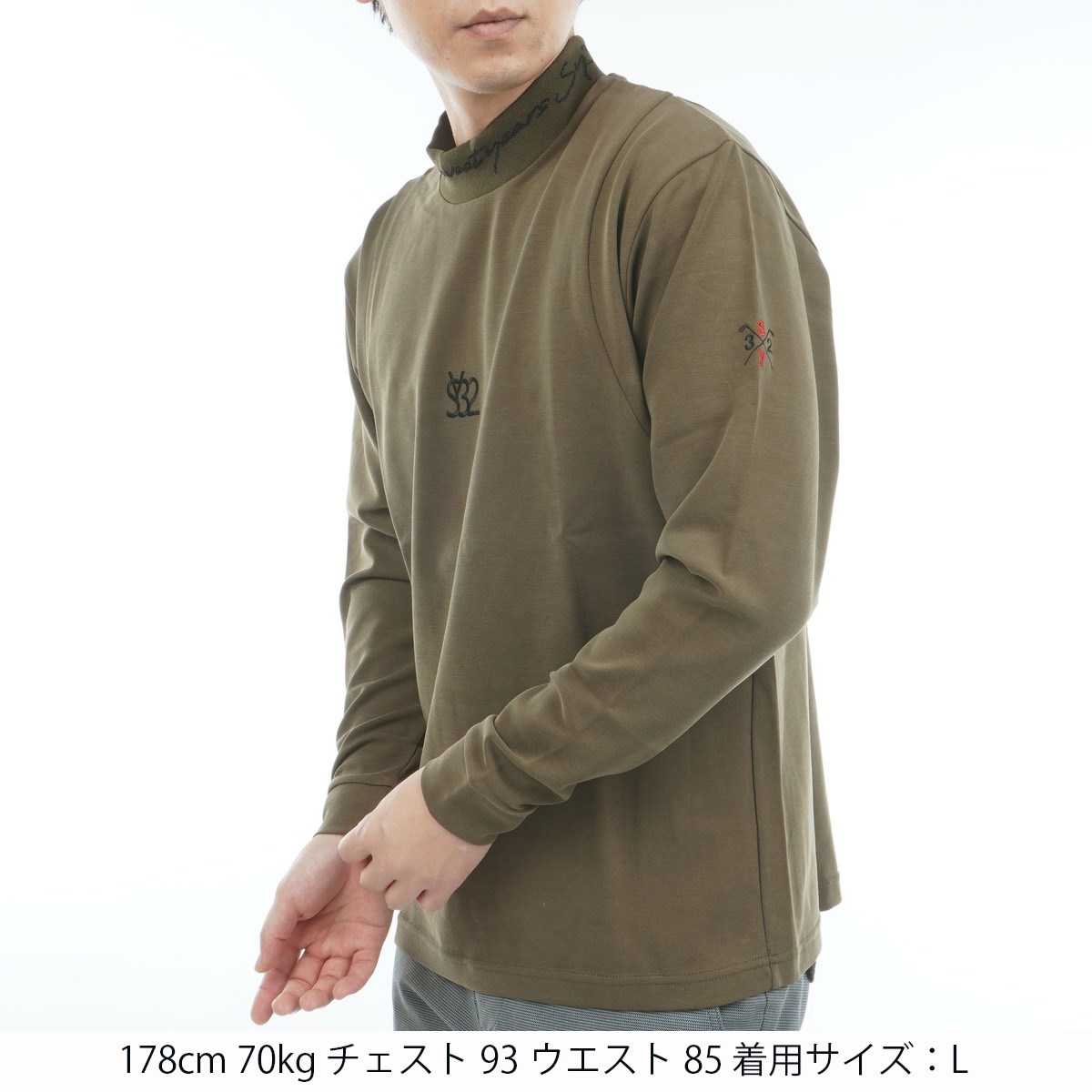 エスワイサーティトゥ バイ スウィートイヤーズ SY32 by SWEET YEARS モダール ストレッチ ミラノ モックネック長袖シャツ M オリーブ