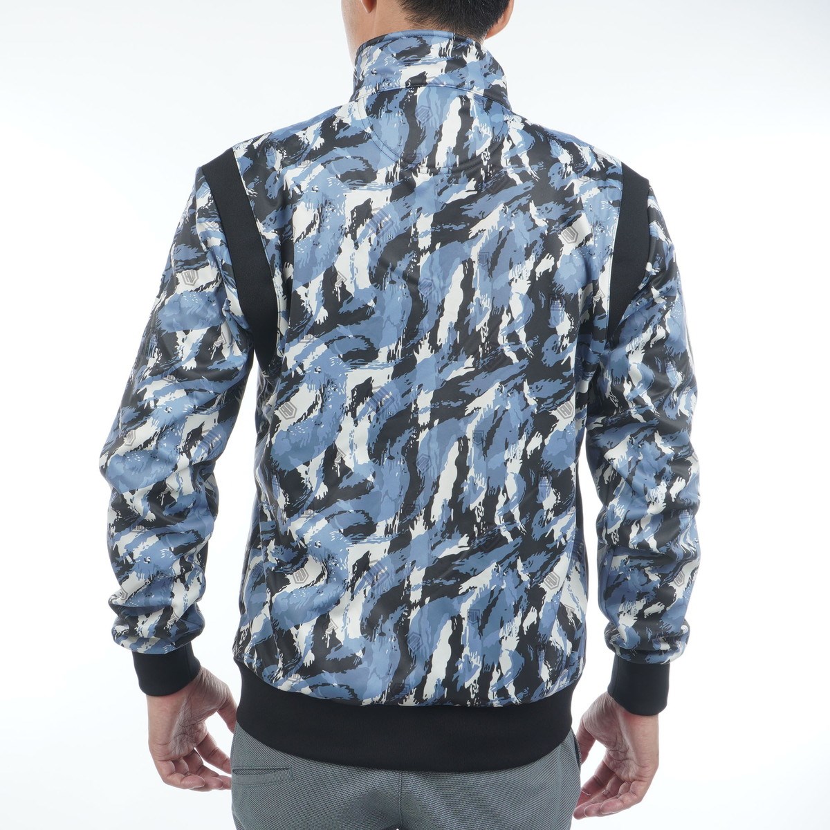 ストレッチ性に優れたマット調のカモ柄プリント素材に、防風フィルムとフリースをボンディングした「ウインドガードウォーム」素材を採用し、衣服内の体温をしっかりキープ。