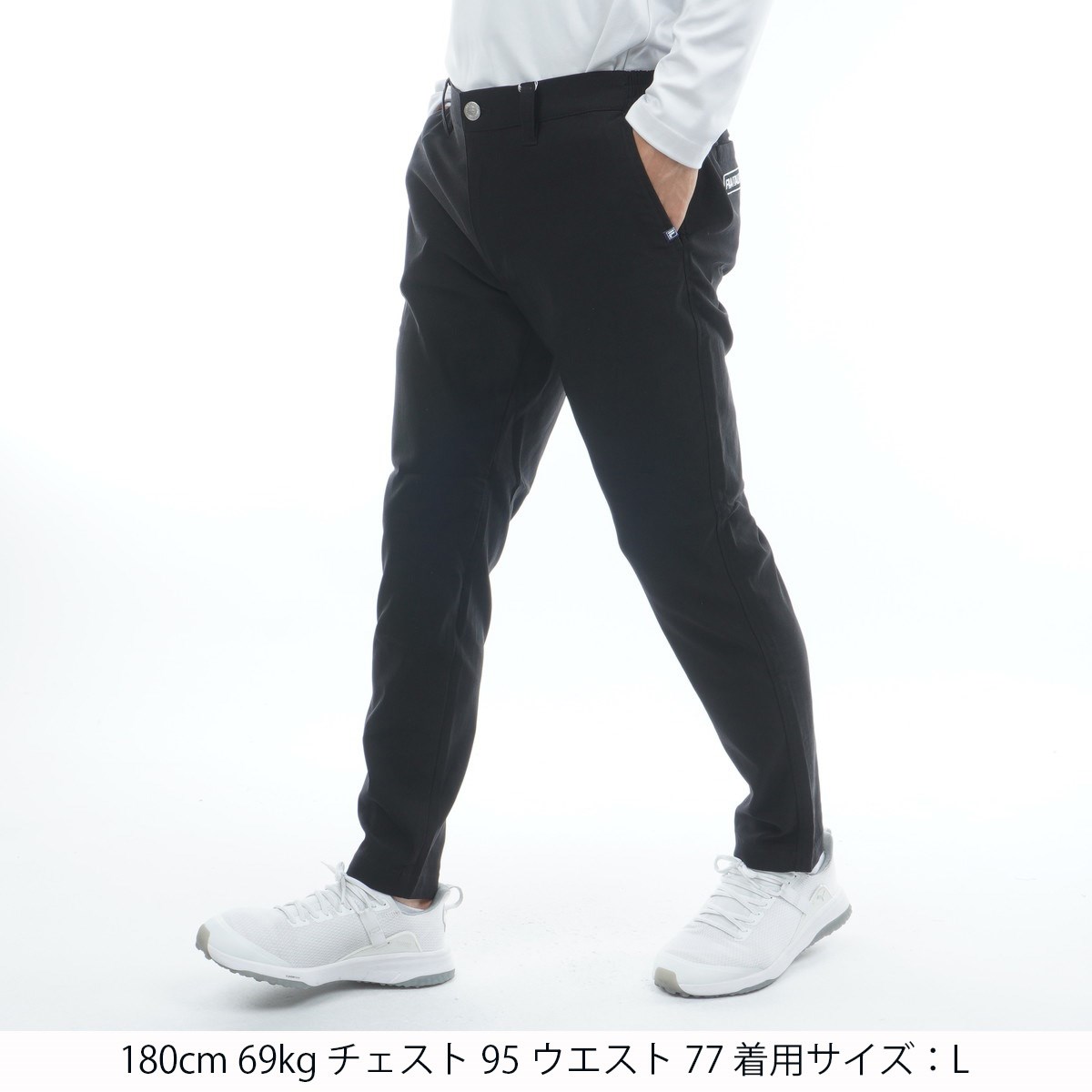 フィラ FILA ストレッチツイル 9分丈テーパードパンツ 3L ブラック
