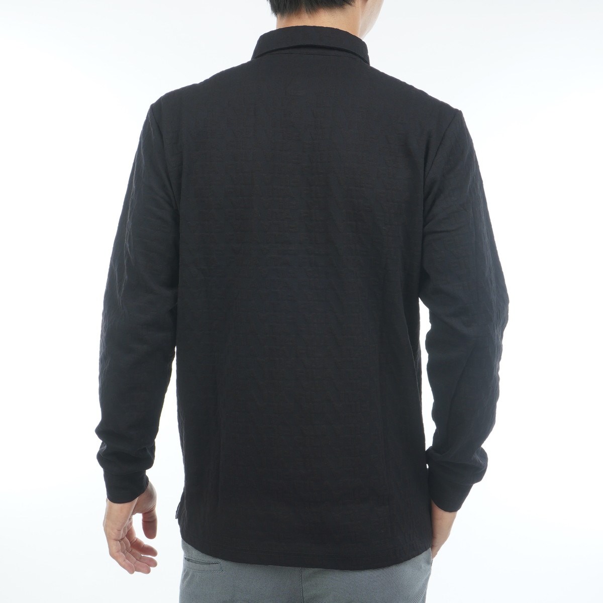 さりげないロゴが上品に映えるロゴジャカード長袖ポロシャツ。