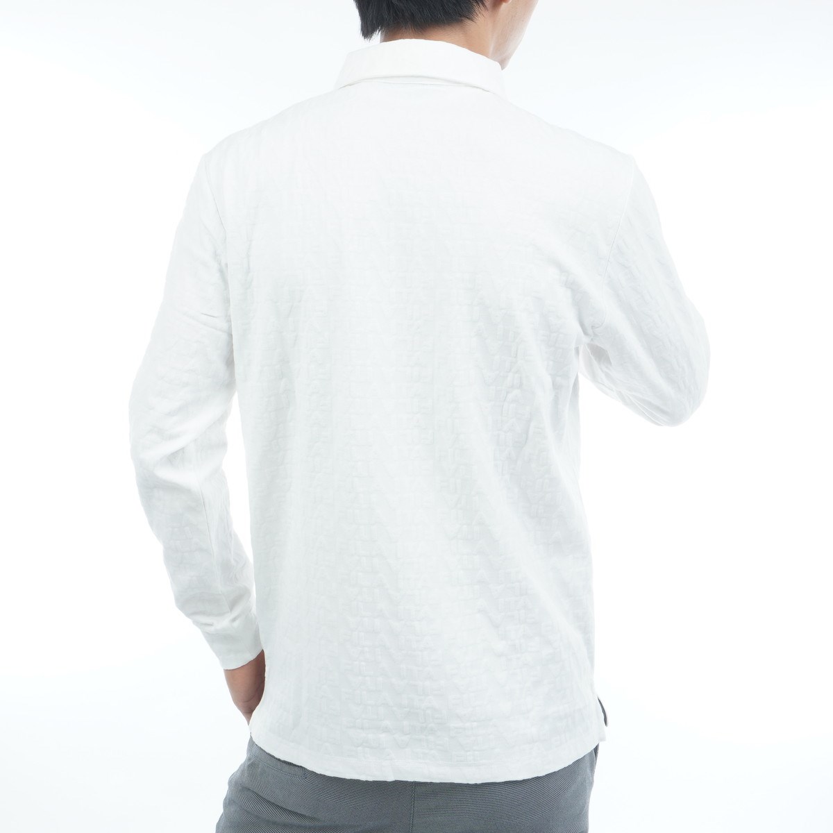 さりげないロゴが上品に映えるロゴジャカード長袖ポロシャツ。