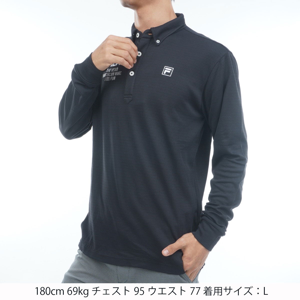 フィラ FILA ストレッチ 裏起毛長袖ポロシャツ 3L ネイビー