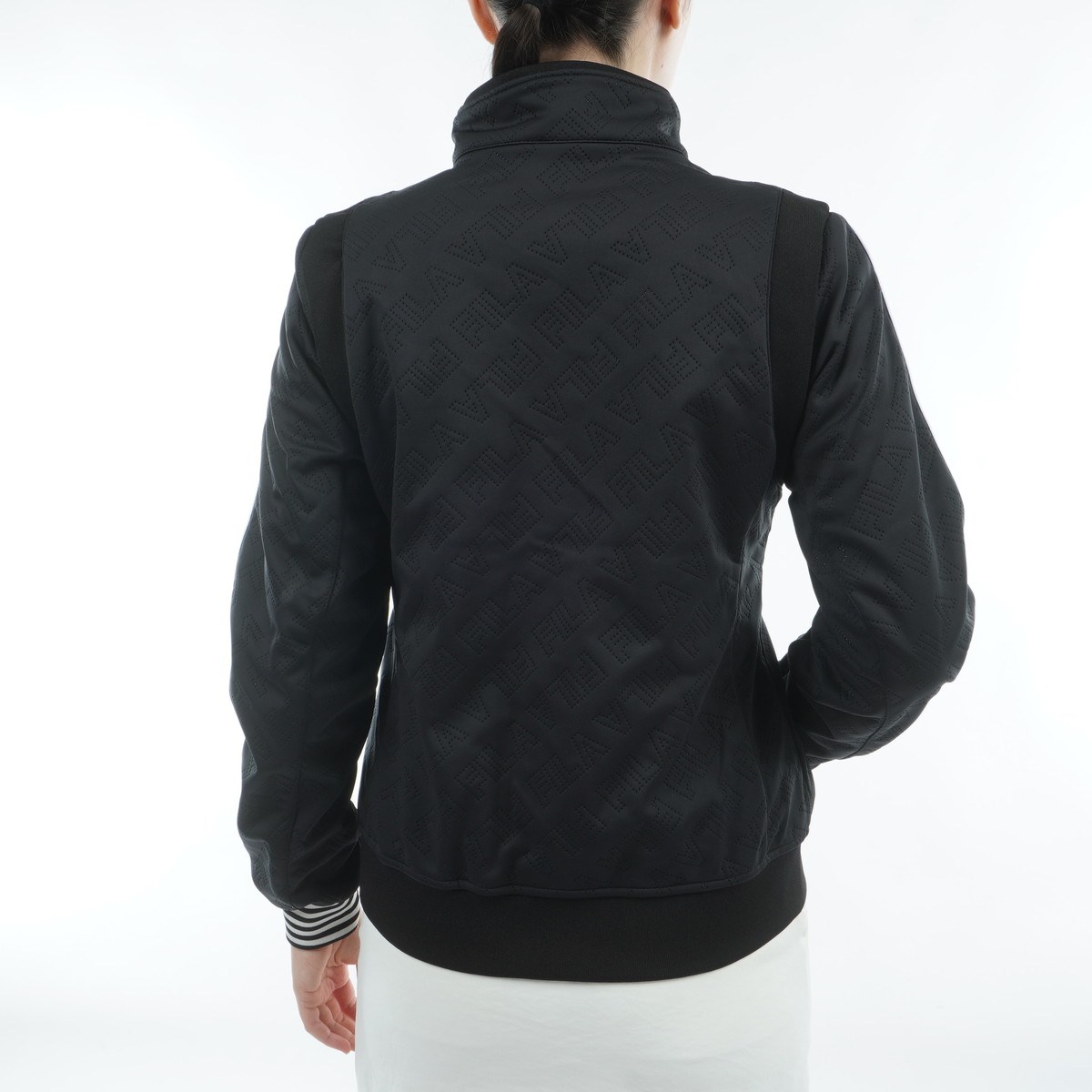 ストレッチ性に優れたFILAオリジナルのタイポ柄の高周波キルトに、防風フィルムとフリースをボンディングした「ウインドガードウォーム」素材を採用。