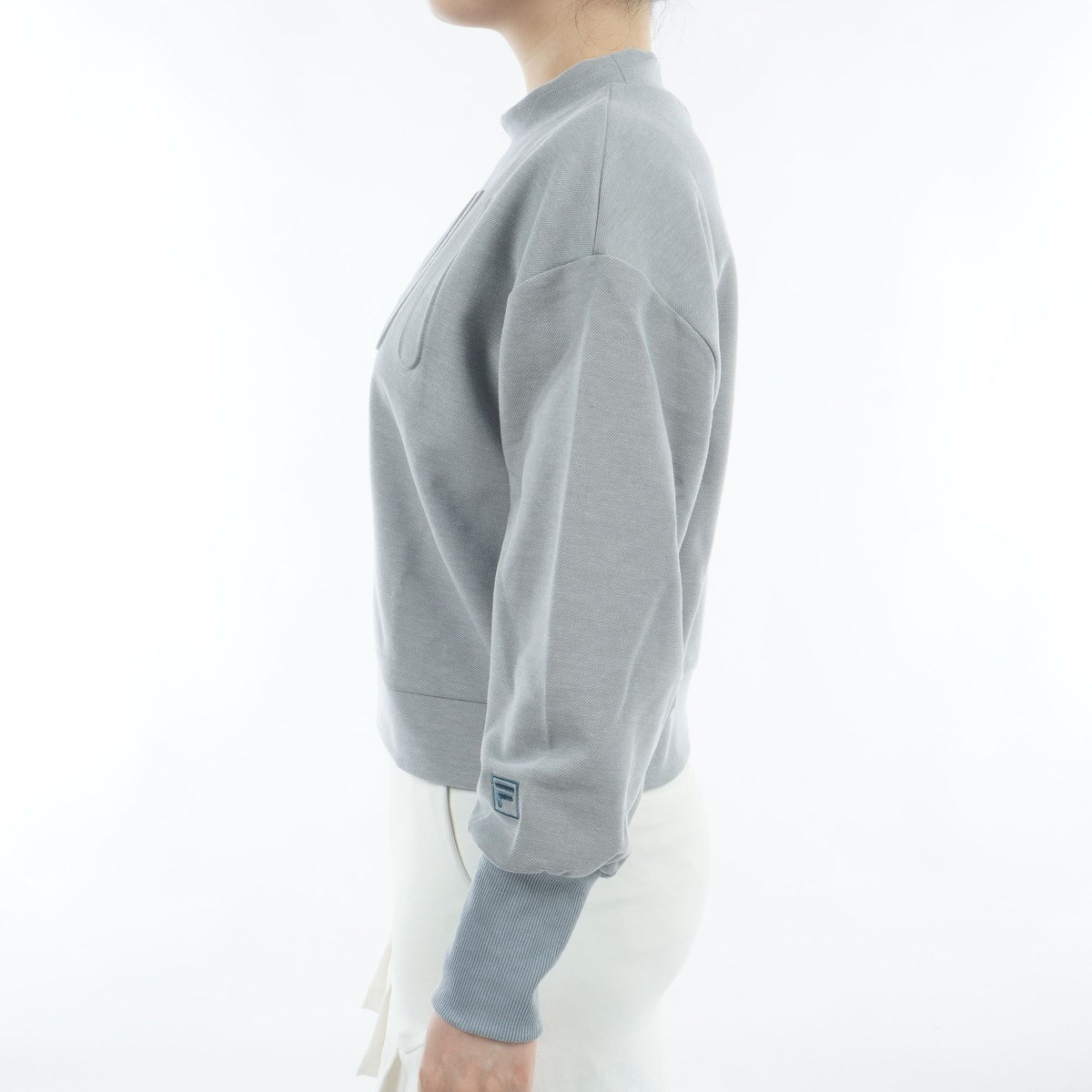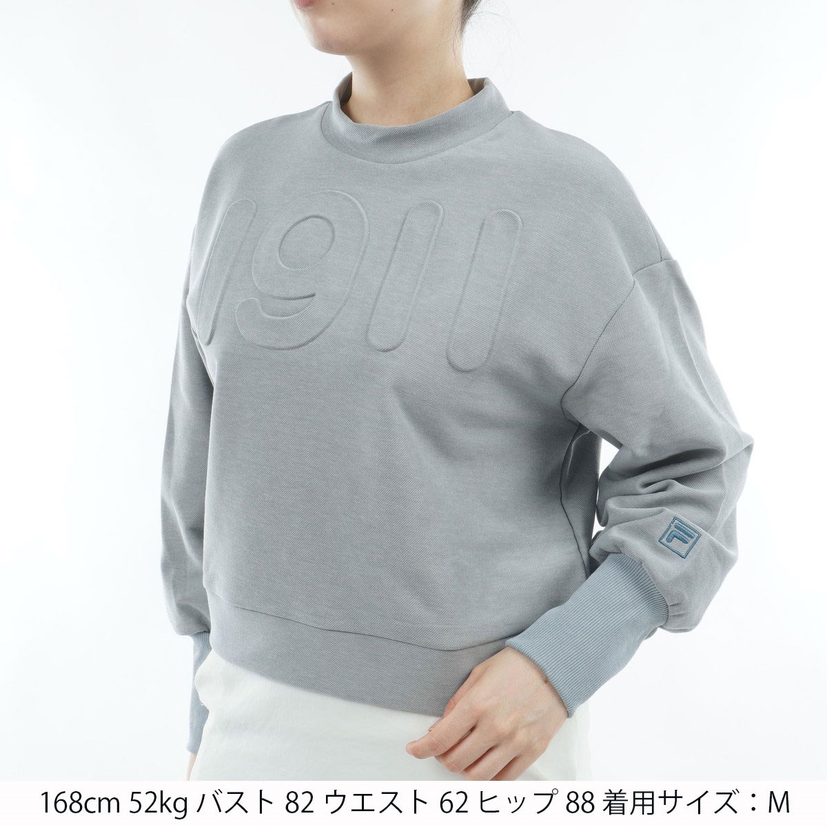 袖口は長めのリブ仕様でフィット感を高め、左袖口にはFボックスロゴ刺繍、フロントのナンバーモチーフはエンボス加工で、プリントとは一線を画す上質な雰囲気に。