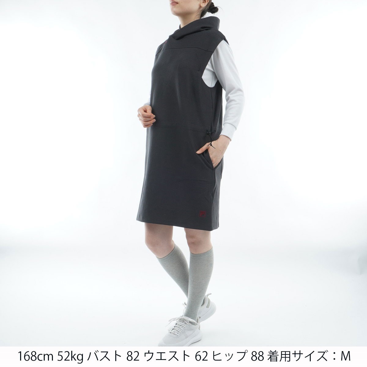 フィラ FILA ストレッチ 裏起毛 パーカーベストワンピース LL ブラック レディス