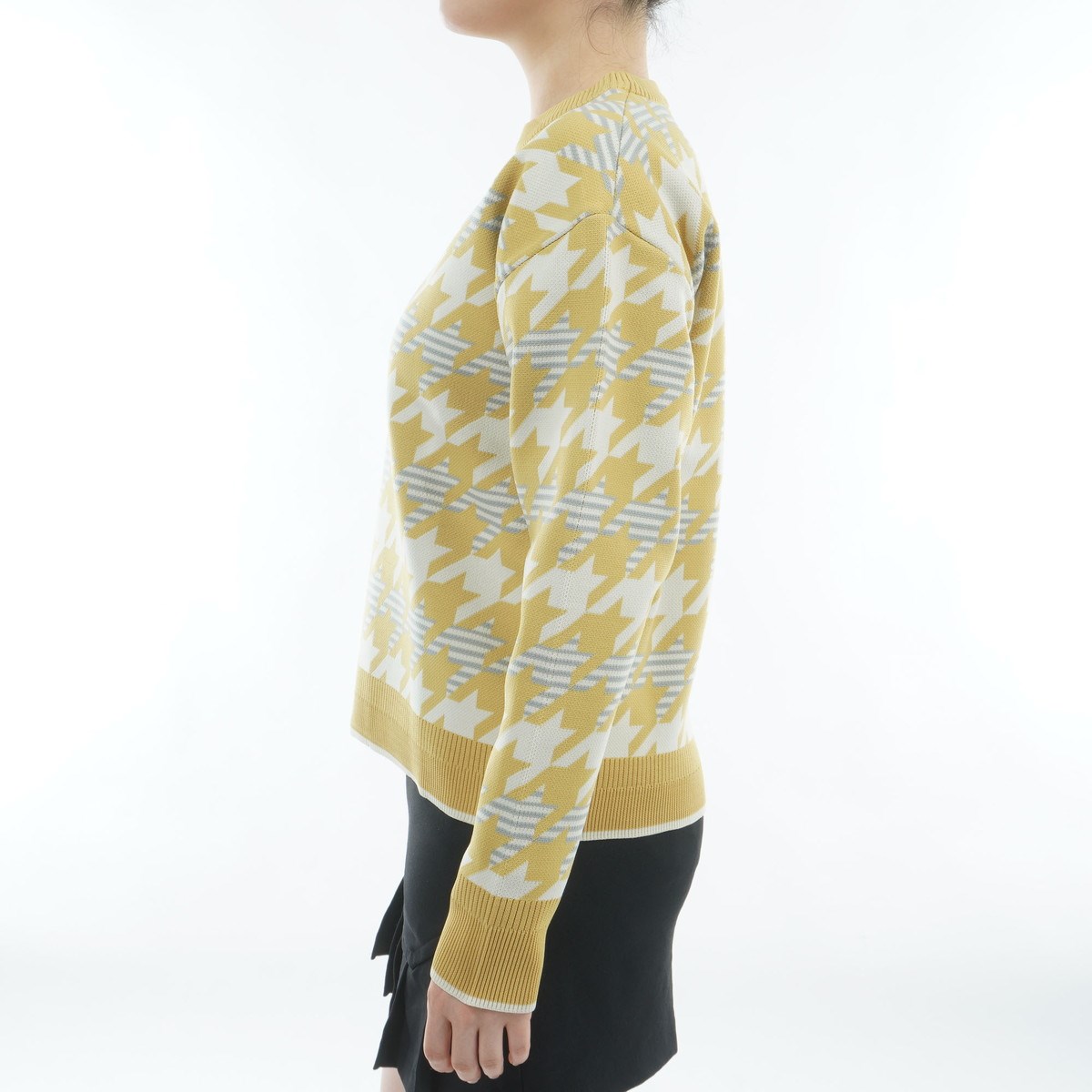 軽量ポリエステルニットを使用したクルーネックセーター。
