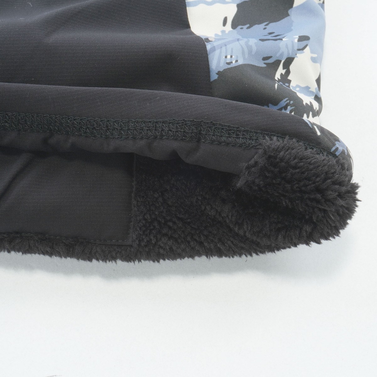 ウェアと共通のカモ柄ボンディング素材に中綿入りタフタを組み合わせた、暖かさとデザイン性を兼ね備えたアイテム。