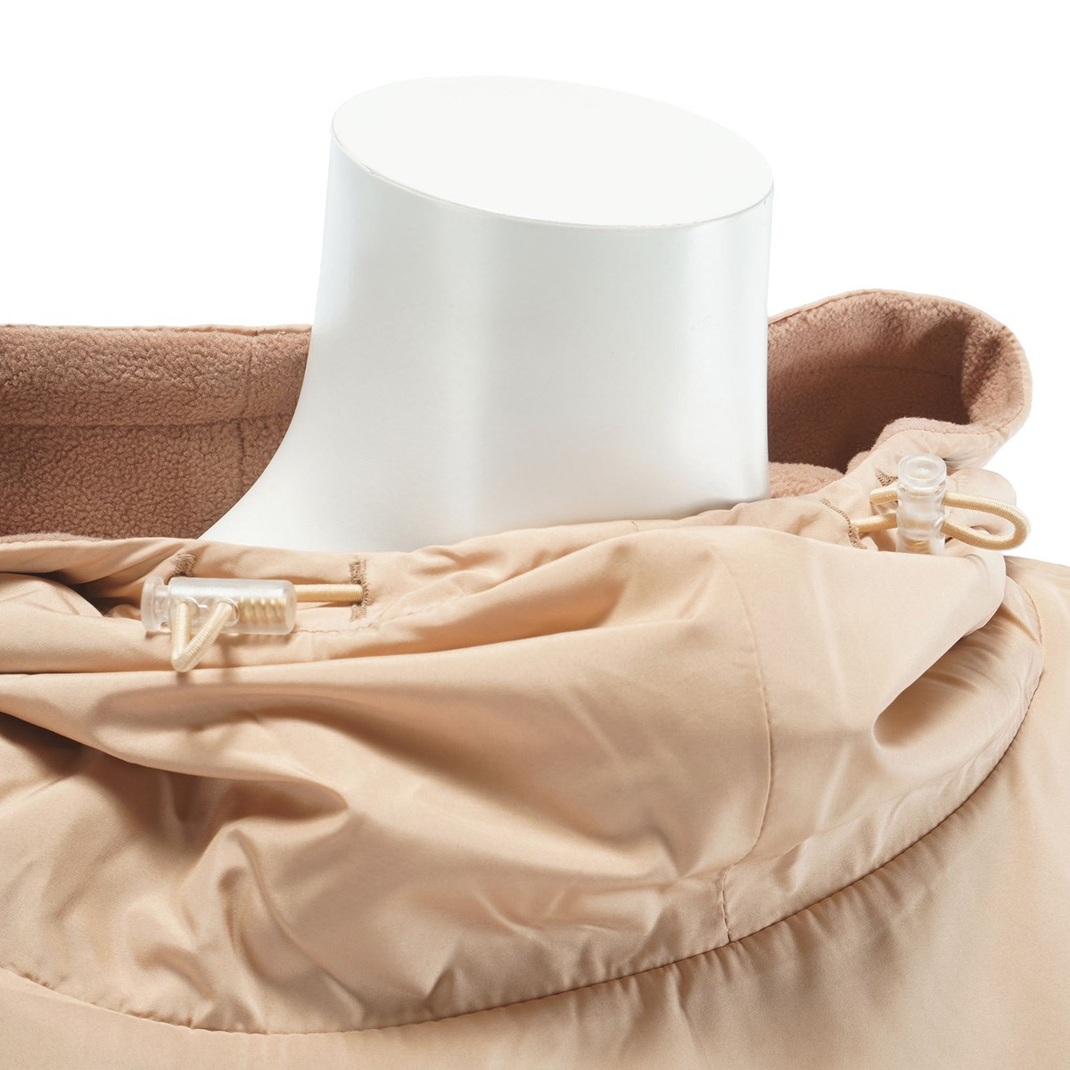 撥水性と保温性を備えたポリエステルタフタ×フリース素材の防寒ポンチョ。