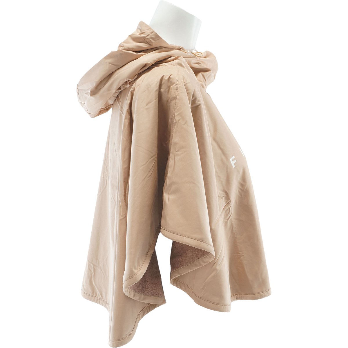 撥水性と保温性を備えたポリエステルタフタ×フリース素材の防寒ポンチョ。