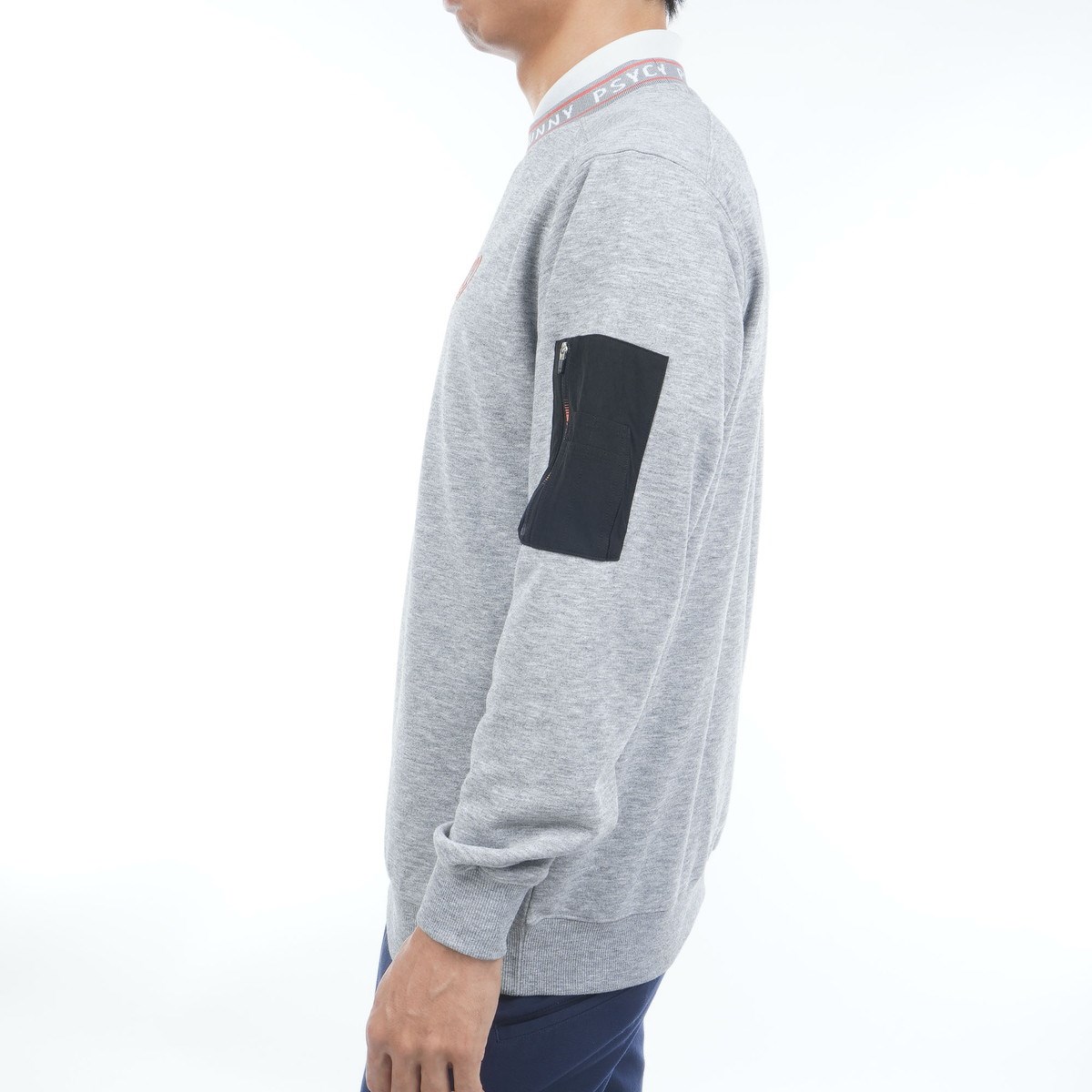 MA-1で使用されるポケットを左袖につけ、アクティブな印象を与えるスウェット生地のプルオーバートレーナー。
