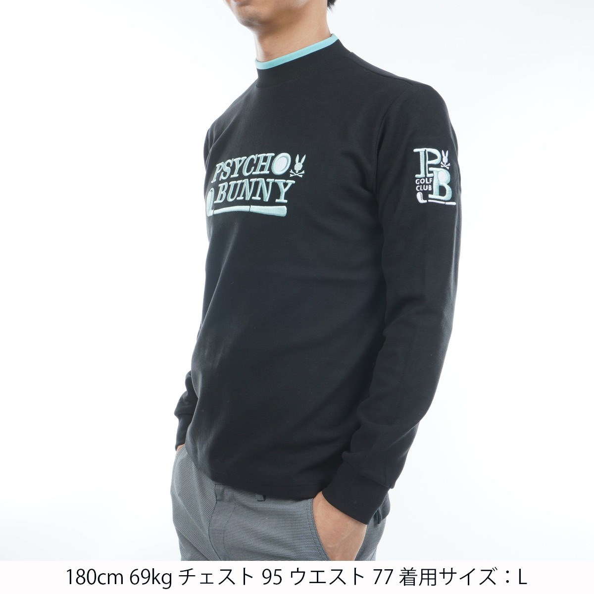 本国PsychoBunnyのオリジナルモチーフを立体刺繍でデザインしたモックネックTシャツ。