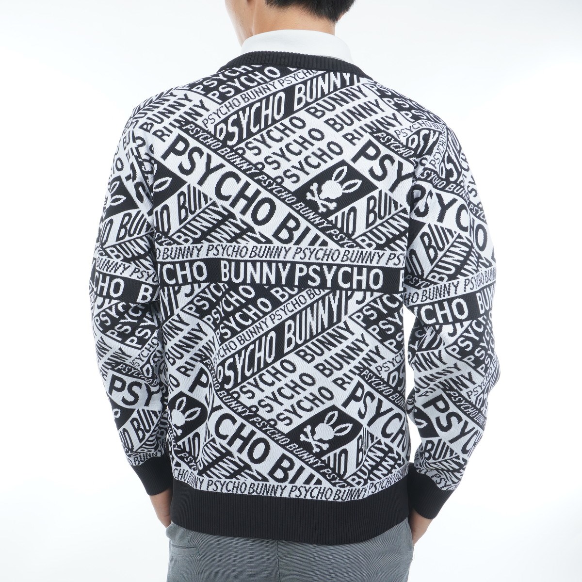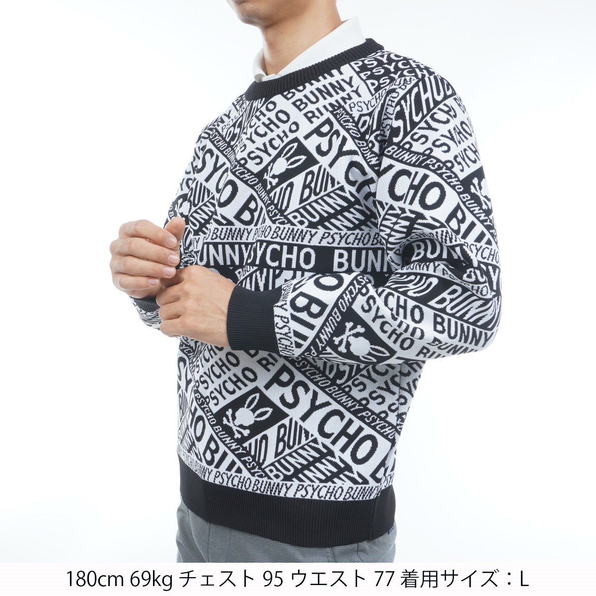 サイコバニー PSYCHO BUNNY GOLF 総柄フォントロゴ オリジナルジャカードセーター M ホワイト