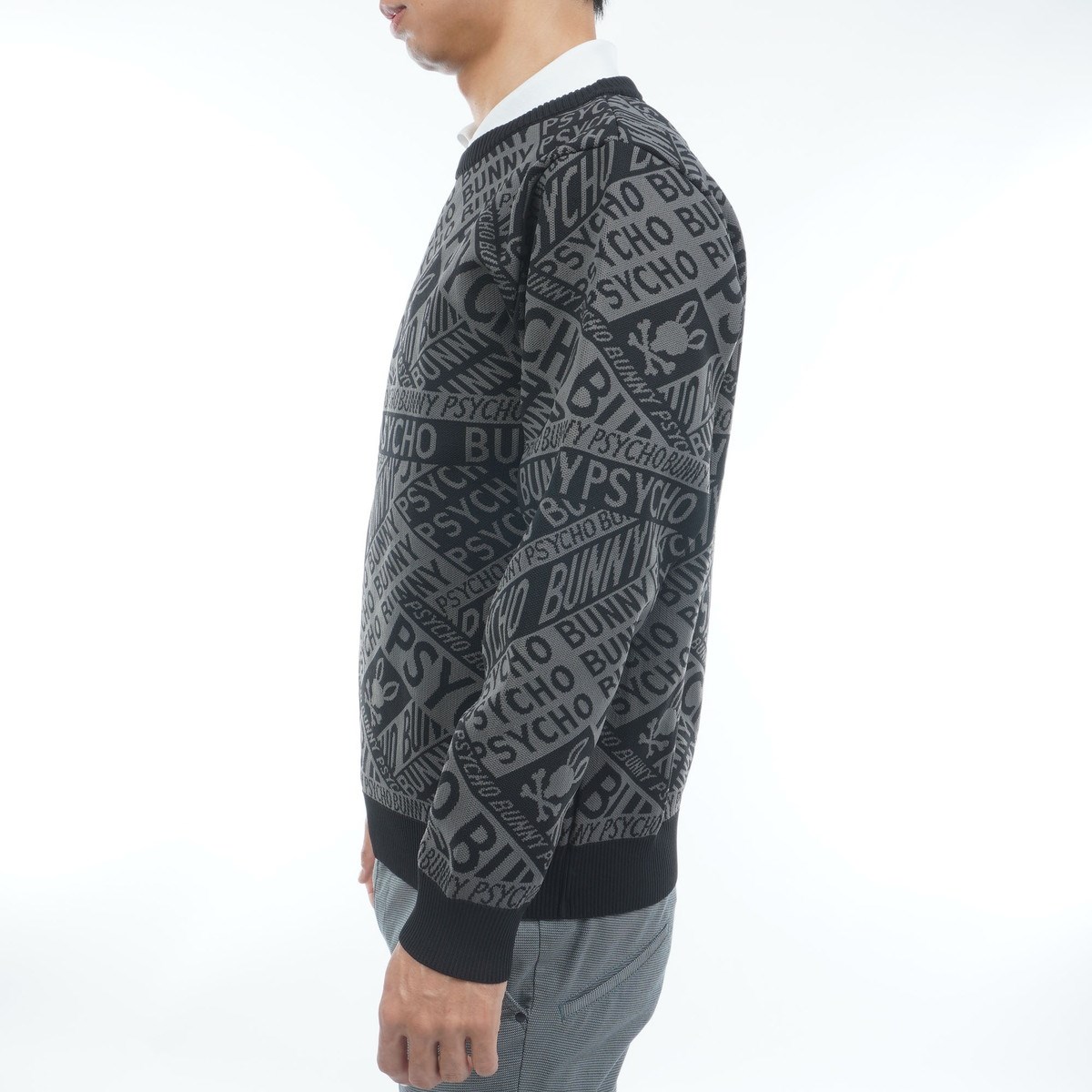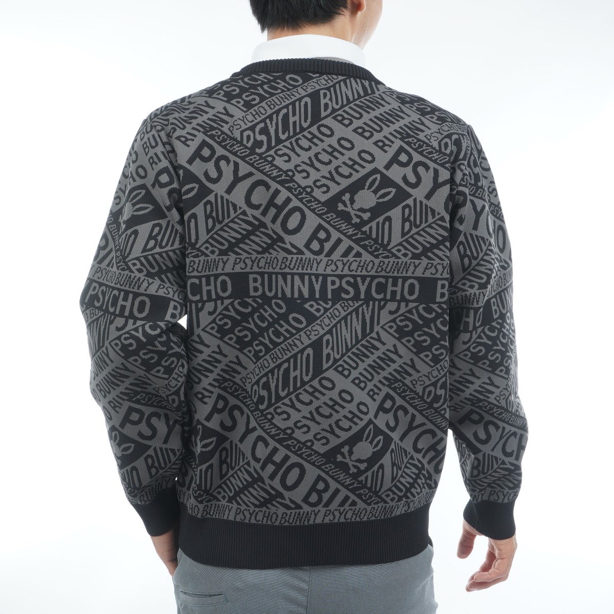 サイコバニー PSYCHO BUNNY GOLF 総柄フォントロゴ オリジナルジャカードセーター M ブラック