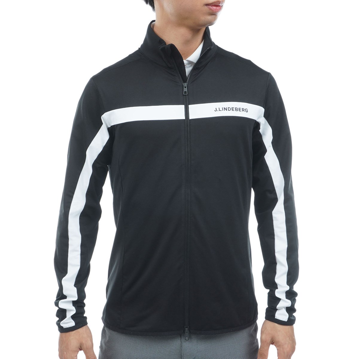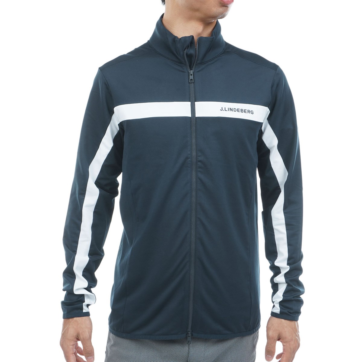 ロゴ引き手付き2WAYジッパー、背面にブリッジを挿入し、左胸にはJ.LINDEBERGの刺繍があります。