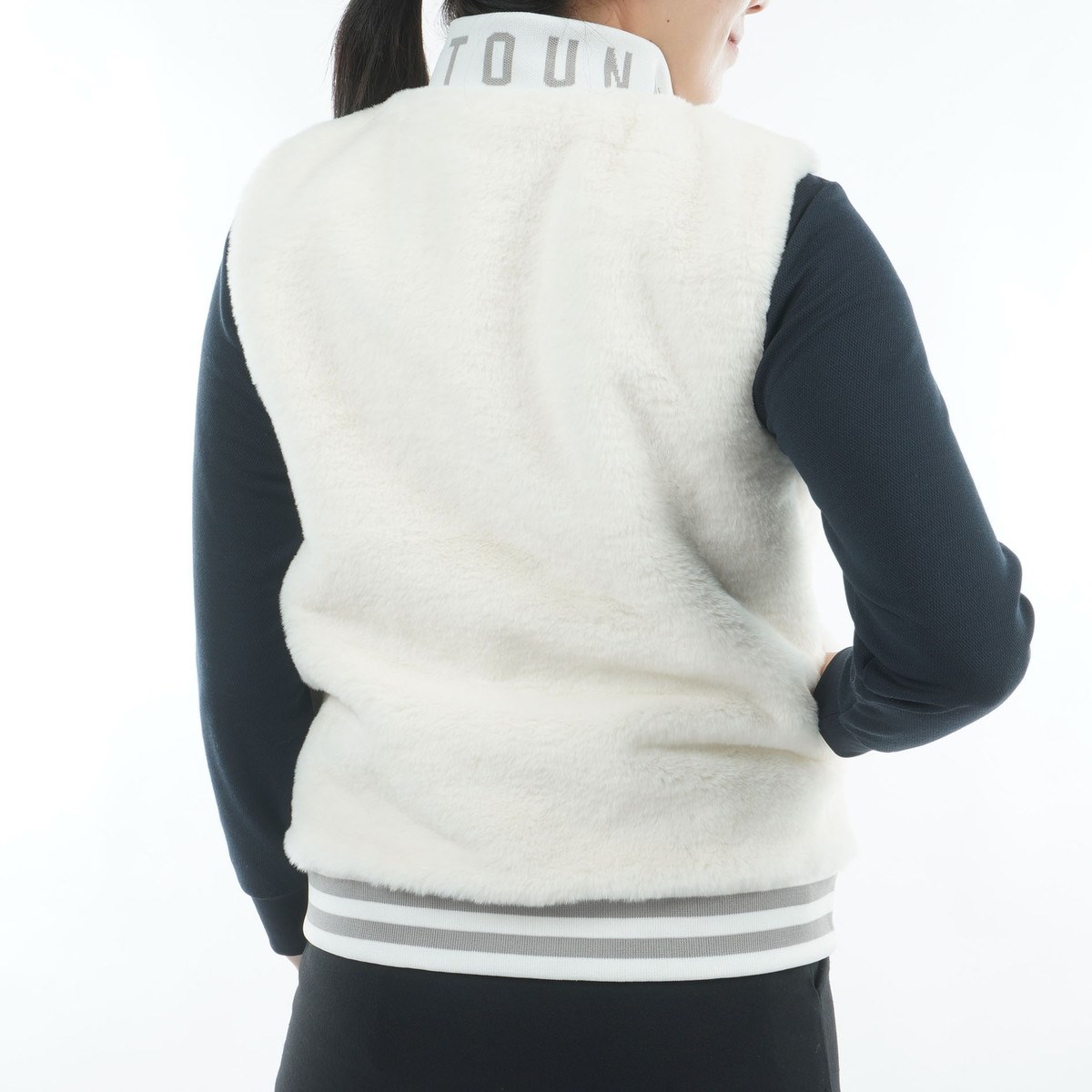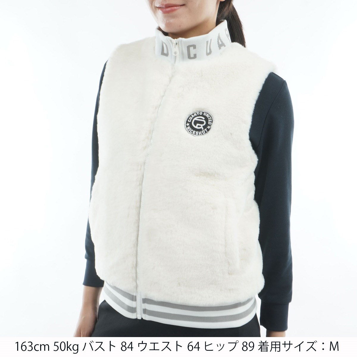 クアルトユナイテッド CUARTO UNITED 衿ロゴファーベスト M ホワイト レディス