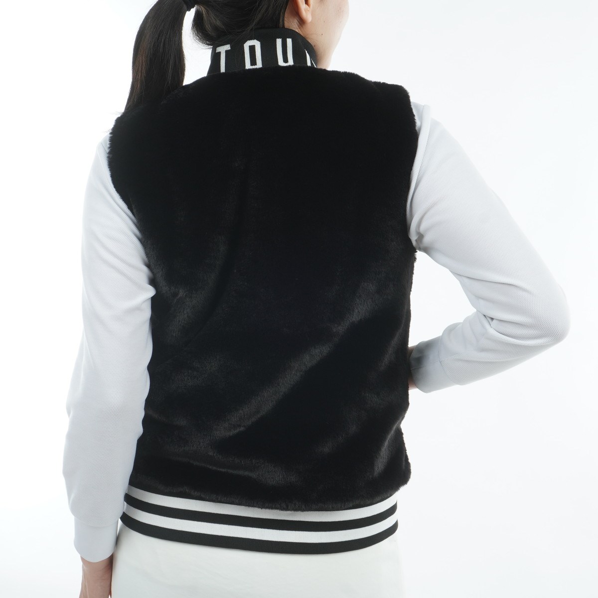 クアルトユナイテッド CUARTO UNITED 衿ロゴファーベスト L ブラック レディス