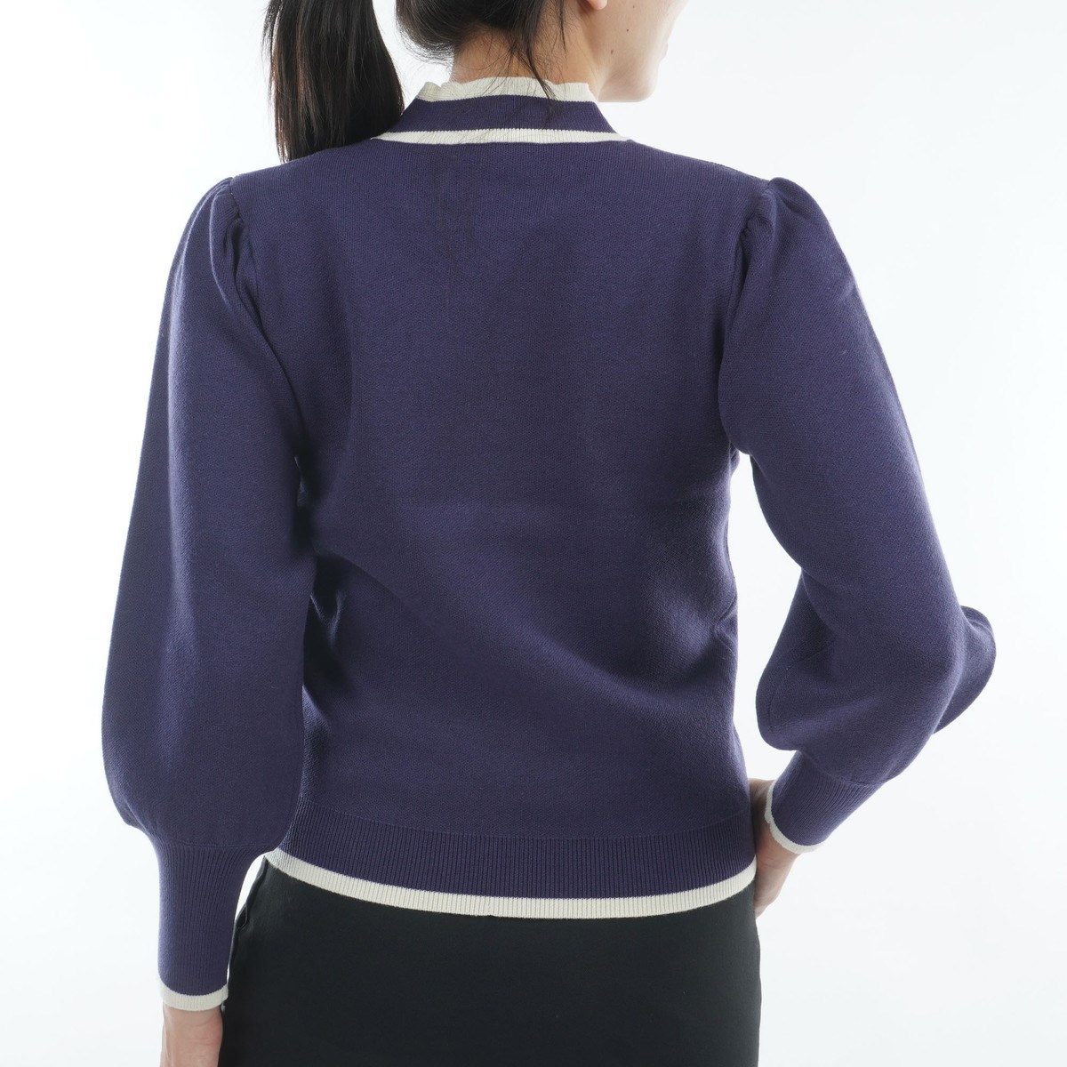 クアルトユナイテッド CUARTO UNITED 防静電気 ロゴパフスリーブセーター M ネイビー レディス