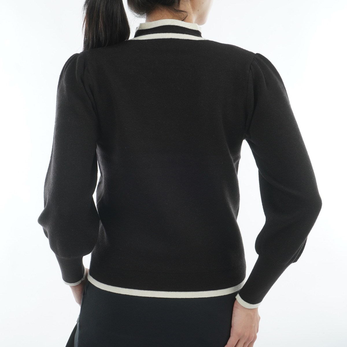 袖にボリュームを持たせたパフスリーブが、抜け感あるニット。