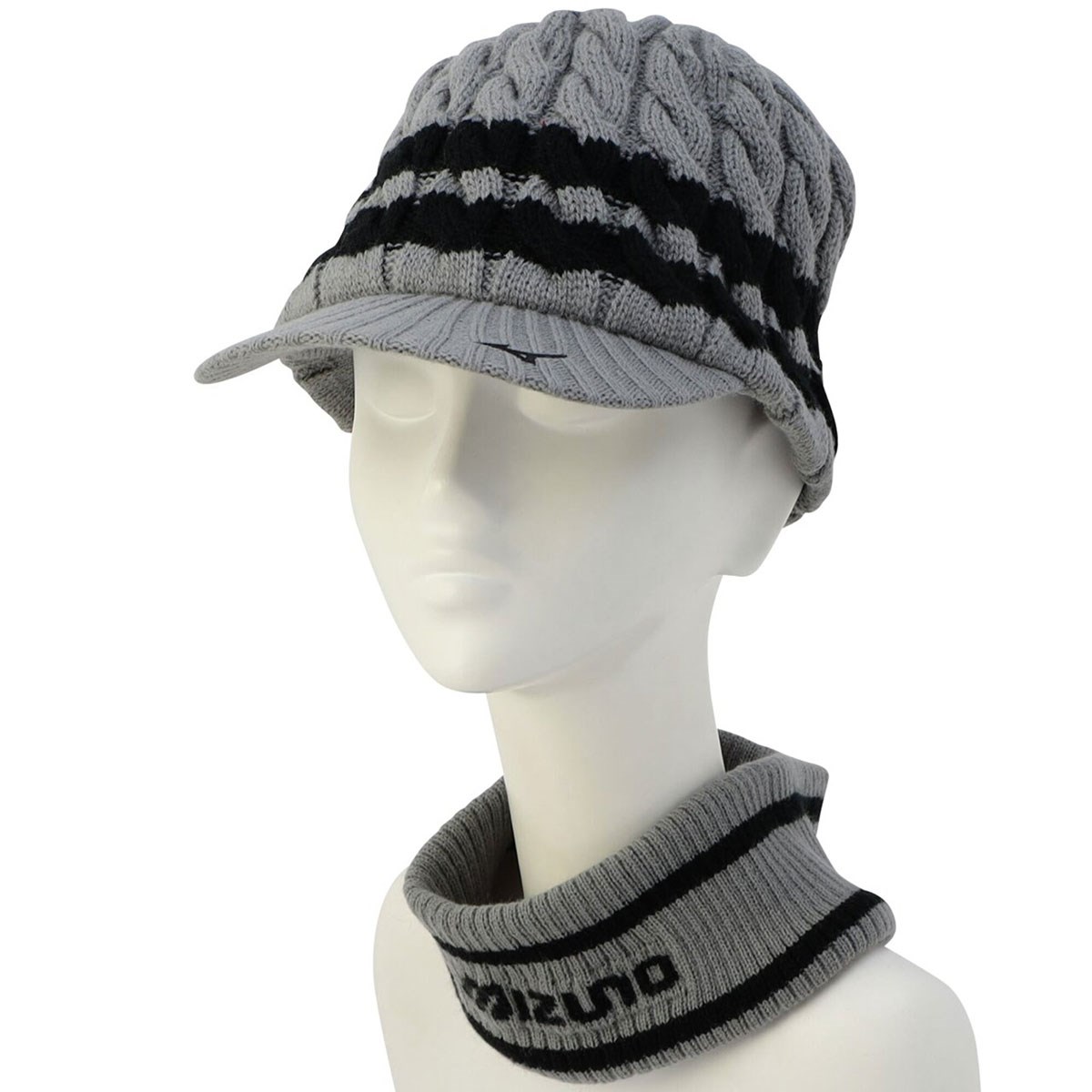ミズノ MIZUNO 2WAY ブレスサーモ ネックウォーマー付きブリムニットキャップ フリー グレー 05