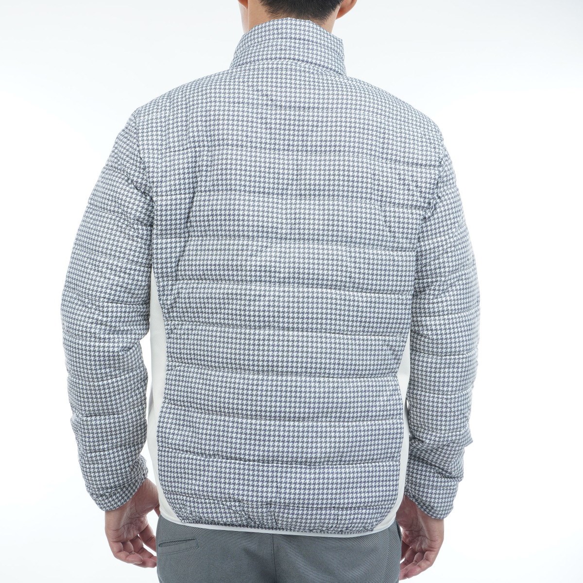 千鳥柄プリントがスタイリングのポイントになり、オシャレに着こなせる防寒アウターです。